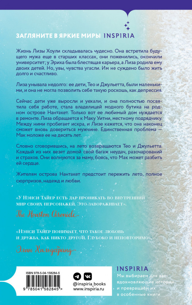 «Нэнси Тайер понимает любовь и дружбу, как никто другой. Глубоко и неповторимо», — Элин Хильдебранд. |