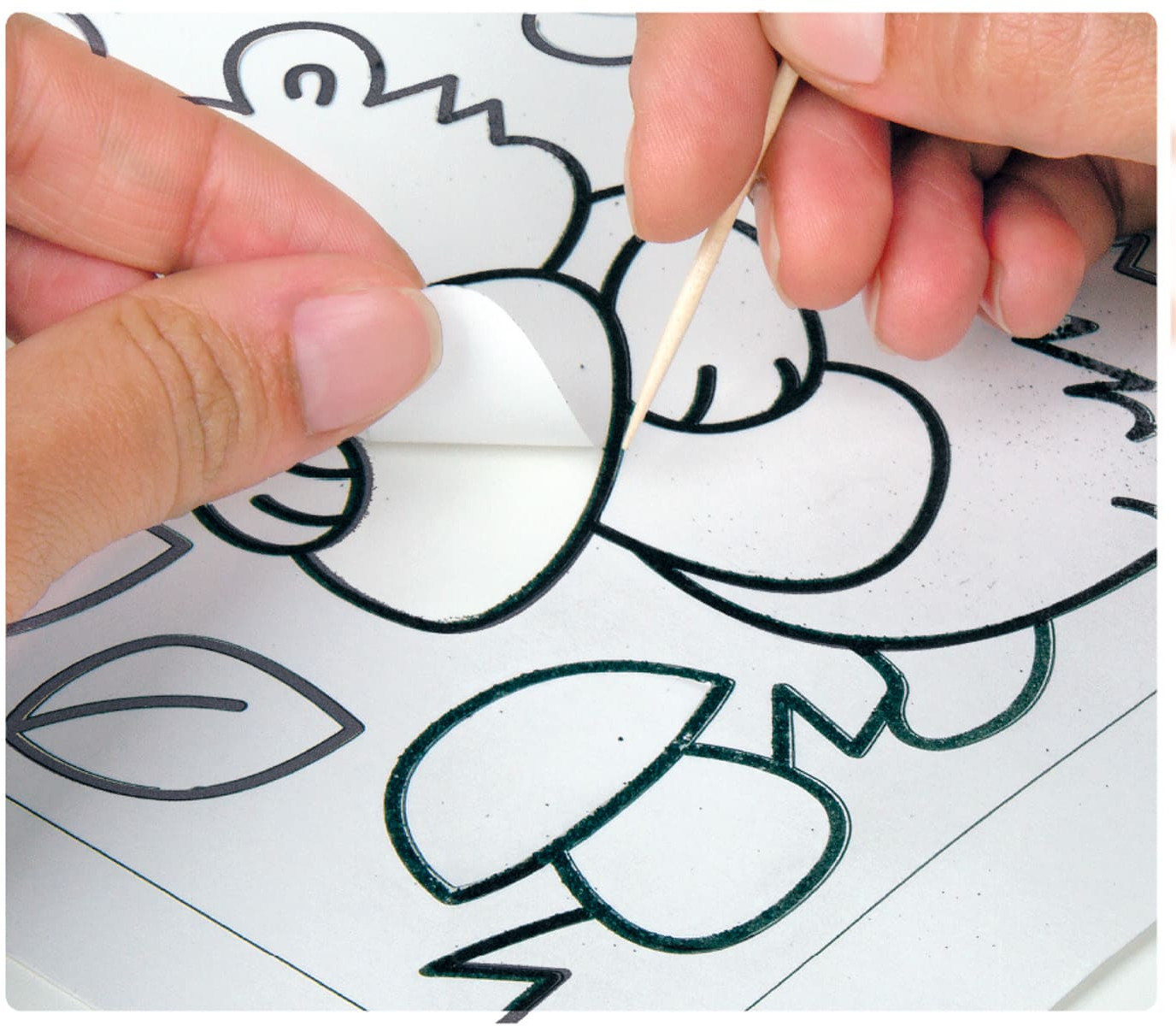 • снимите верхний защитный слой бумаги с участков, которые будут одного цвета;