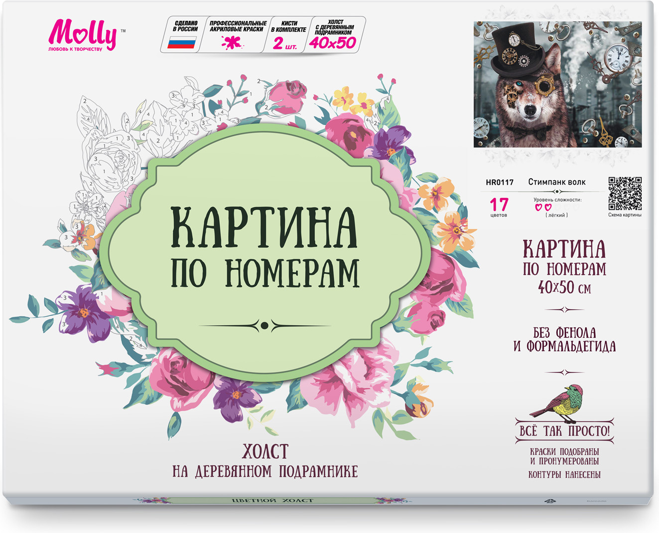 Стимпанк волк — это набор для творчества, с помощью которого своими руками и без специальной подготовки можно нарисовать картину по номерам. Рисование развивает мелкую моторику, память и воображение.
