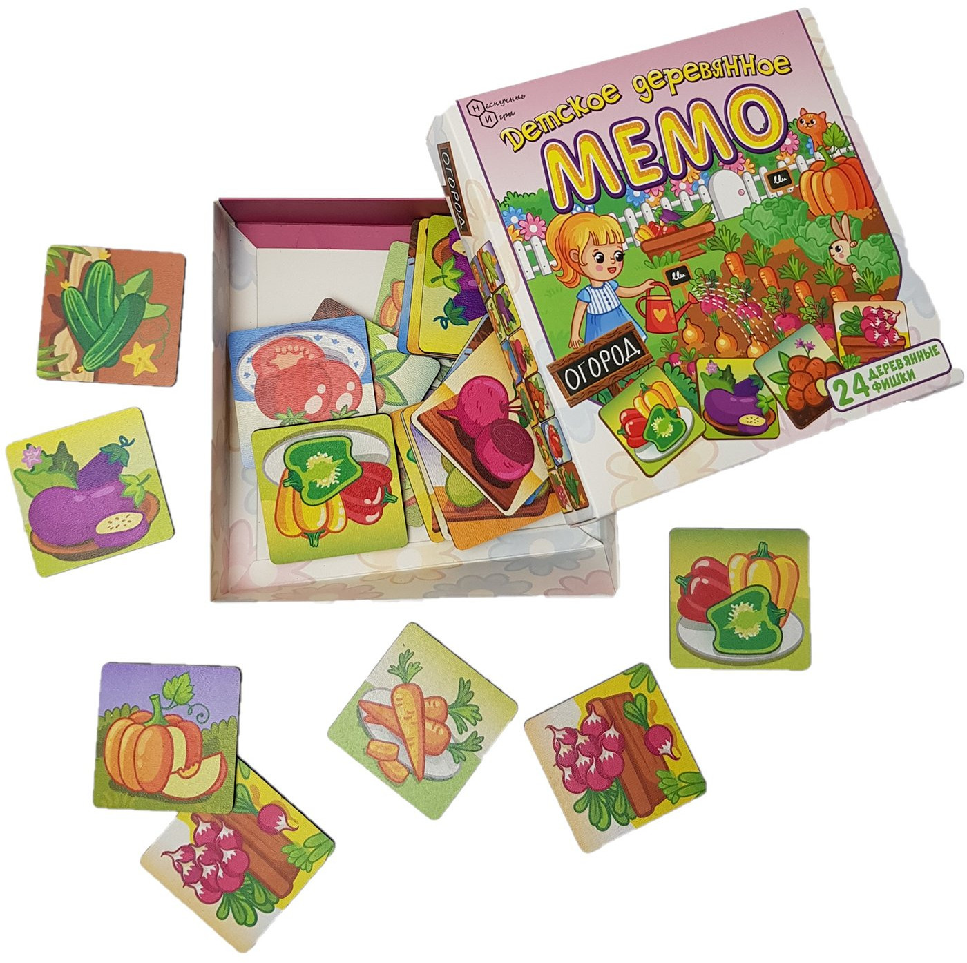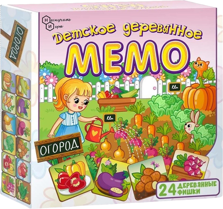 Серия: Детское деревянное Мемо «Мемо» — это всегда хороший подарок, который одинаково подходит как для мальчиков, так и для девочек. Эта игра поможет вам развить вашу память. Вам необходимо собрать как можно больше пар карточек, то есть две карточки с одинаковой картинкой. Разложите карточки на столе картинками вниз. Начинает игру самый младший игрок и ход переходит по часовой стрелке. Игроки по очереди переворачивают по две карточки таким образом, чтобы все могли видеть изображенные на них картинки. Если картинки на карточках одинаковые, то игрок забирает их. Он может продолжать игру до тех пор, пока он находит карточки с одинаковыми картинками. Если картинки на карточках не совпадают, то игрок кладёт карточки обратно картинками вниз и ход переходит к следующему игроку, сидящему слева. Выигрывает тот игрок, который к концу игры наберет большее количество парных карточек. |