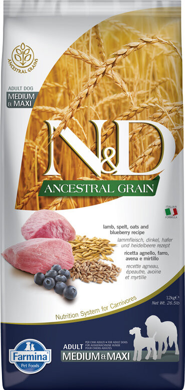 Farmina Pet Foods Корм для взрослых собак средних и крупных пород низкозерновой с ягненком и черникой+3235