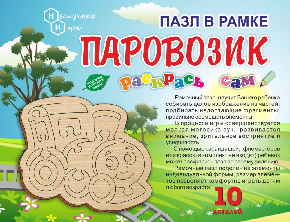 Нескучные игры Пазл-рамка. Раскрась сам «Паровозик»+54