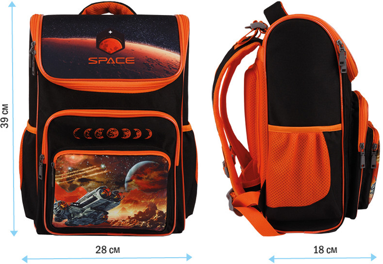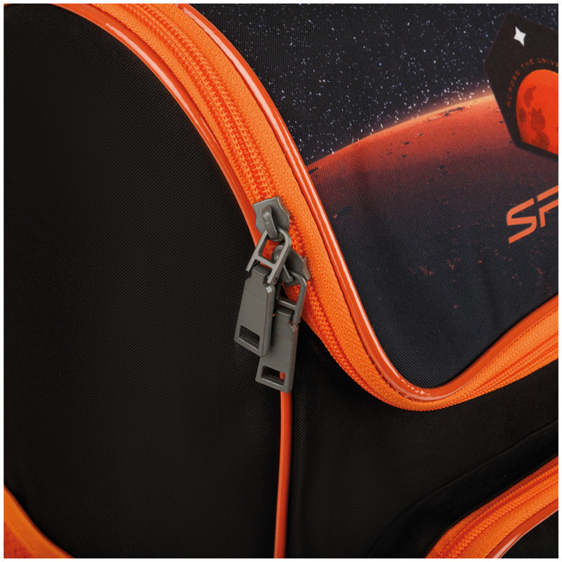 Серия: Cosmic Ранец школьный анатомический полумягкий станет надёжным помощником для учеников младшей и средней школы. У ранца одно отделение, два передних кармана на молнии и два боковых. Ранец закрывается на молнию из пластика. Ранец изготовлен из полиэстера, имеет непромокаемое дно из ПВХ. Передняя и боковые части рюкзака мягкие, спинка жёсткая, дно уплотнено слоем спонжа. Эргономичная спинка, регулируемые по длине и высоте лямки, нагрудное и поясничное крепление позволяют плотно фиксировать рюкзак на спине. Световозвращающие элементы на передней части и на лямках обеспечивают безопасность в темное время суток. Основное отделение дополнено органайзером для тетрадей, карманом для канцелярских мелочей и расписанием уроков. |