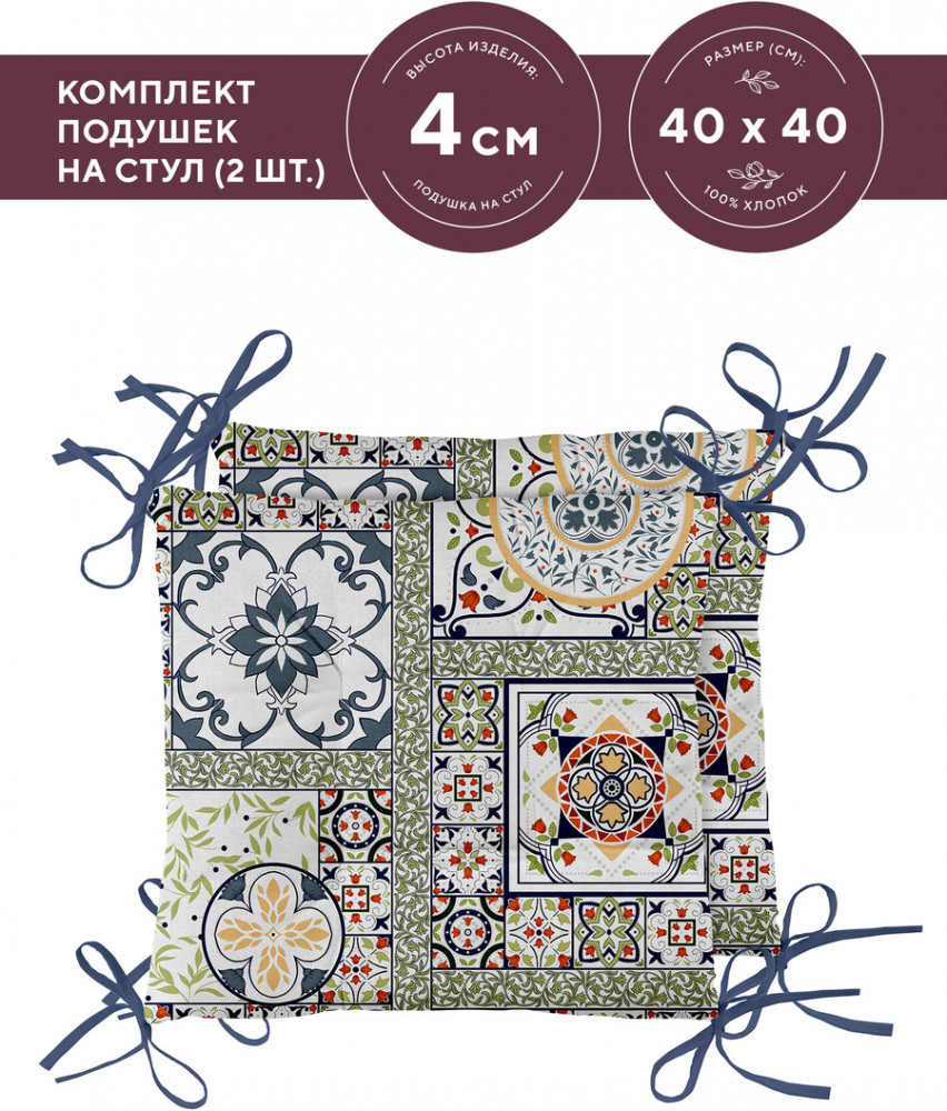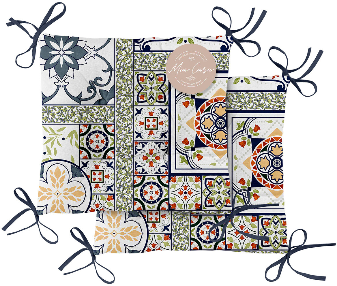 Серия: Азулежу Мягкие и плотные подушки на стулья Mia Cara в солнечном оформлении венецианским орнаментом. Квадратные подушки-сидушки на стулья в размере 40×40 см подойдут для стульев самых разнообразных размеров. Благодаря хлопковым завязкам, подушка на стул может быть зафиксирована так, как удобно именно вам. Материал верхнего чехла — 100% хлопок рогожка. Это натуральный материал, стойкий к истиранию, загрязнениям и неприхотливый в уходе. |