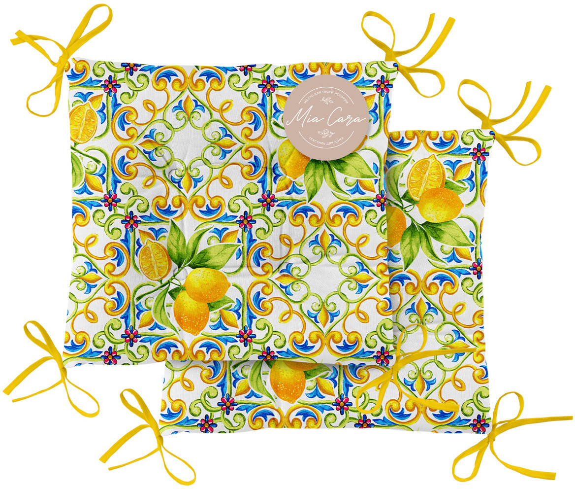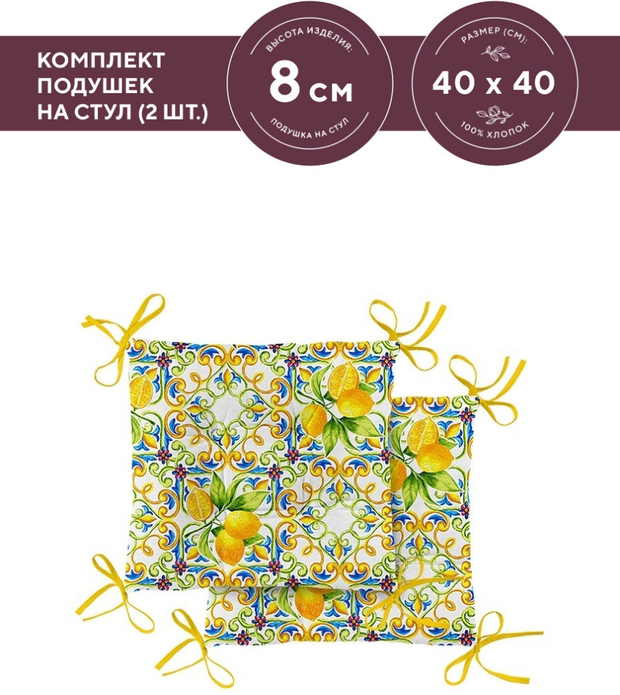 Серия: Lemonade Мягкие и плотные подушки на стулья Mia Cara в солнечном оформлении венецианским орнаментом. Квадратные подушки-сидушки на стулья в размере 40×40 см подойдут для стульев самых разнообразных размеров. Благодаря хлопковым завязкам, подушка на стул может быть зафиксирована так, как удобно именно вам. Материал верхнего чехла — 100% хлопок рогожка. Это натуральный материал, стойкий к истиранию, загрязнениям и неприхотливый в уходе. |