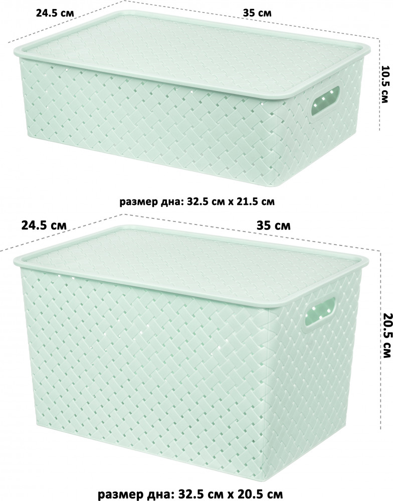 Корзины понравились. Вместительные, удобные. Крышки не очень плотно закрываются, но для меня это было не важно.