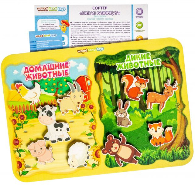 WoodLandToys Сортер «Какая разница?Домашние и дикие животные»В данный момент этот товар отсутствует в продаже. Возможно, у нас найдется аналогичный или похожий товар здесь. Сортер «Какая разница» — занимательная развивающая игрушка на липучках. Игрушка состоит из деревянной доски с двумя противоположными тематическими изображениями и комплекта соответствующих фигурок — липучек. Игра с сортером «Какая разница», с одной стороны, очень проста —нужно прилеплять и отлеплять на доске фигурки. А с другой стороны, ребенку сначала потребуется подробно познакомиться со всеми изображениями, найти место каждой фигурке и только потом прилепить её на соответствующее тематическое поле. Процесс игры с сортером увлекает ребенка на продолжительное время, знакомит с понятием противоположность, развивает мышление, память, воображение. Действия с липучками стимулируют мелкую моторику и координацию движения. Яркие позитивные изображения игрушки привлекают внимание ребенка, формируют у него любознательность и усидчивость, дарят массу положительных эмоций. |