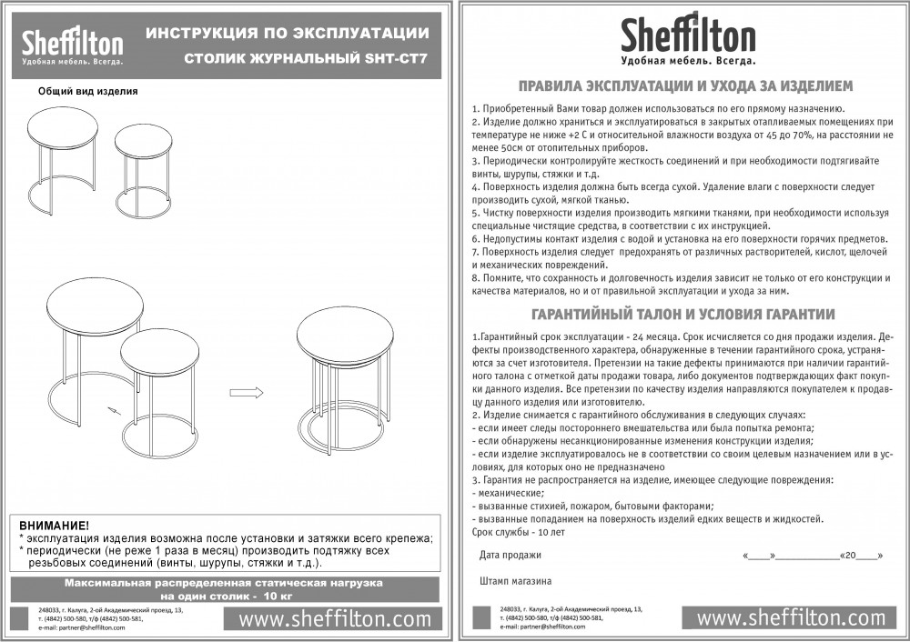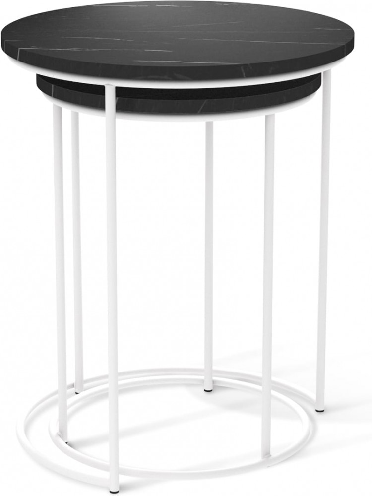 Два в одном: Вы можете использовать два столика в комплекте, красиво перекрыв один другим. Можете использовать в качестве отдельных столиков в каждой комнате своего дома. За ненадобностью можно полностью один задвинуть за другой. Диаметр столешницы верхнего столика 450 мм. Диаметр столешницы нижнего столика 366 мм.