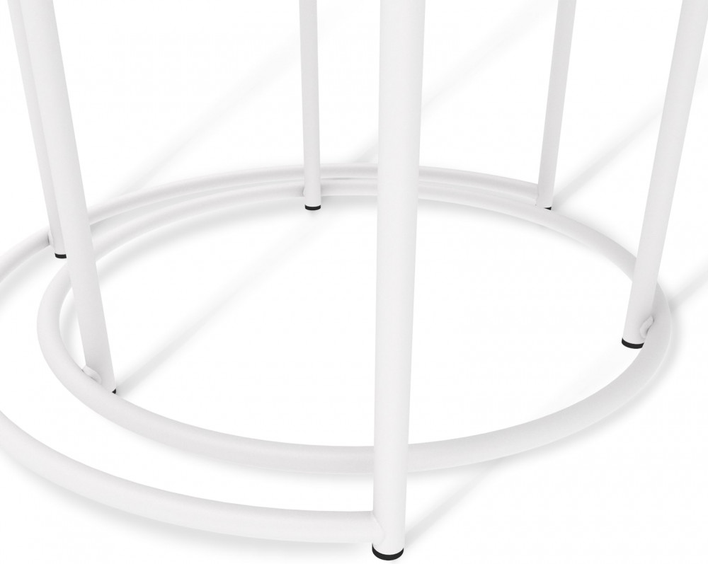 Устойчивый и надежный: надежный металлический каркас окрашен порошковой краской, устойчивой к механическому воздействию. Каркас выполнен из трубы. Столешница выполнена из ЛДСП с нежным природным рисунком под натуральный камень. Максимальная статическая нагрузка на каждый столик 10 кг.