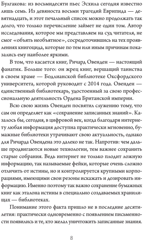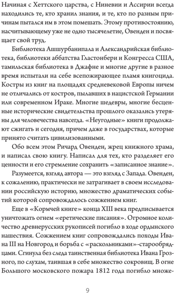На протяжении всей своей истории люди не только создавали книги, но и уничтожали их. Полная история уничтожения письменных знаний от античности до наших дней — в глубоком исследовании британского литературоведа и библиотекаря Ричарда Овендена. |