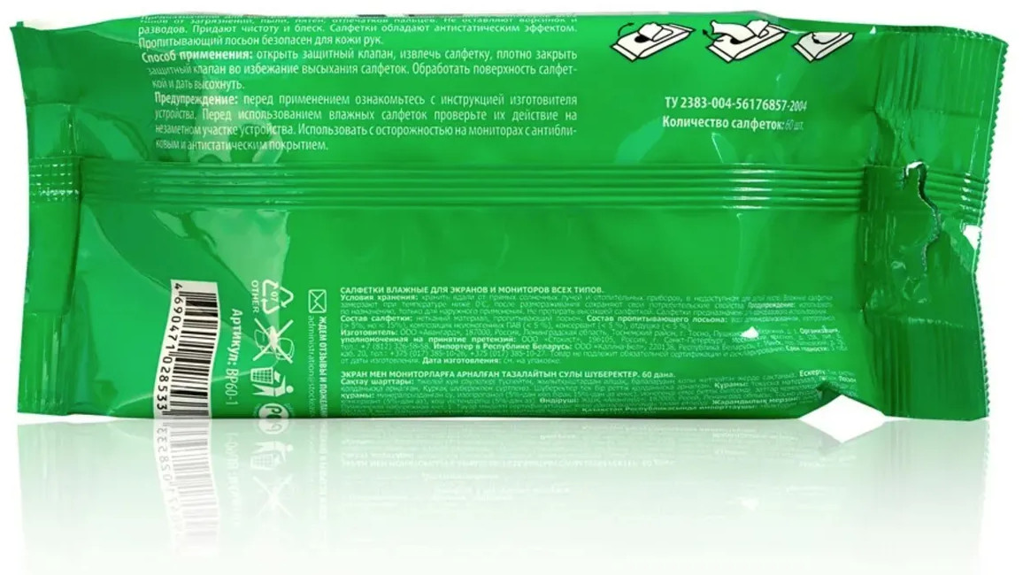Guten Tag Салфетки влажные для очистки экранов и мониторовВ данный момент этот товар отсутствует в продаже. Возможно, у нас найдется аналогичный или похожий товар здесь. Салфетки влажные для экранов и мониторов любого типа. Предназначены для быстрого и эффективного очищения экранов и мониторов всех типов от загрязнений, пыли, пятен, отпечатков пальцев, не оставляя разводов и ворсинок. Придают чистоту и блеск. Салфетки обладают антистатическим эффектом. Пропитывающий раствор безопасен для кожи рук. |
