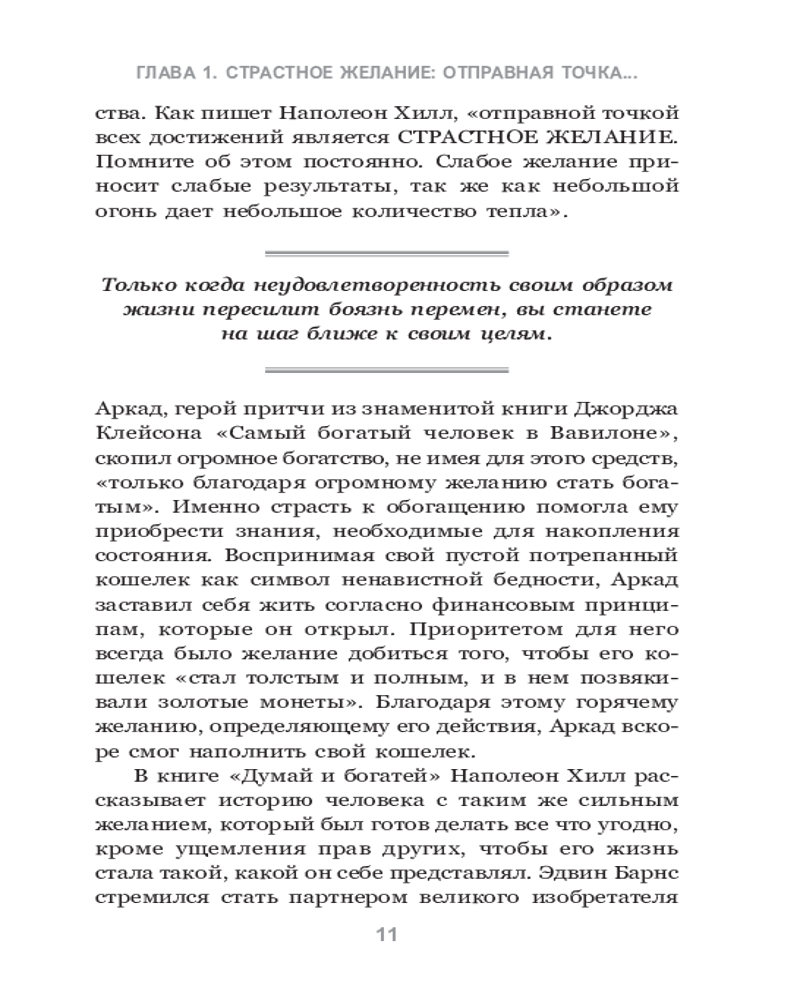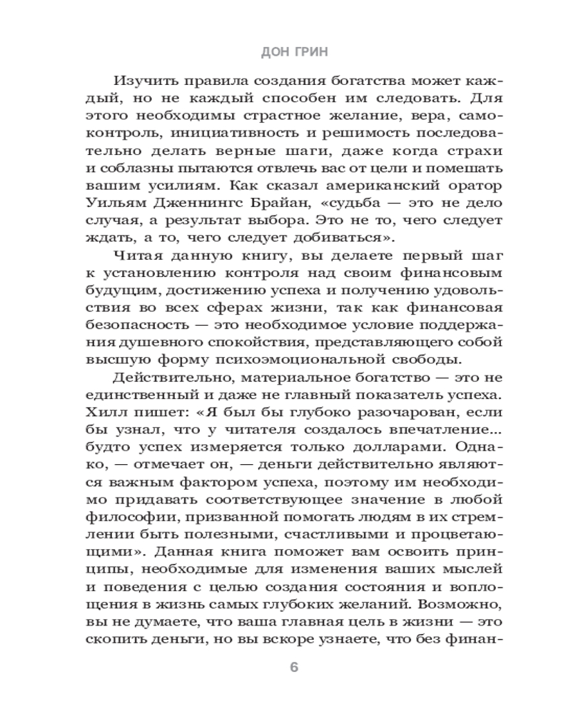 Дон Грин, исполнительный и генеральный директор Фонда Наполеона Хилла, делится своим богатым опытом в области личных инвестиций. Узнайте, почему кто-то преуспевает в материальном отношении, а кто-то остается в долгах, еле дотягивает до зарплаты или не может накопить достаточно средств, чтобы безбедно жить на пенсии. Истории из этой книги иллюстрируют конкретные методы, которые люди использовали для создания своего состояния, разумно тратя, последовательно экономя, правильно инвестируя, увеличивая свой доход и служа другим. Грин опирается на вечные принципы успеха Наполеона Хилла, чтобы вывести простую формулу создания богатства — от трансформации вашего мышления до понимания и использования разных механизмов сбережений и инвестиций. Каждая глава включает в себя простые действия, которые необходимо предпринять, чтобы составить свой план миллионера.