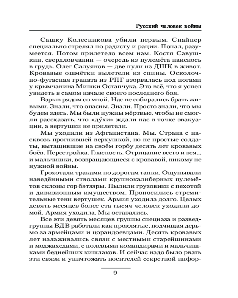 Серия: Военная фантастика Кажется, что попавший в бессознательном состоянии в плен в Афганистане старший лейтенант просто пытается выжить и, сломавшись, плывёт по течению, но выпускника разведывательно-диверсионной школы КГБ СССР ни сломать, ни согнуть невозможно. Он просто ждёт своего часа, а в процессе уничтожает врагов так, как его в своё время научили. Его цель — не только вернуться домой, но и уничтожить советника Центрального разведывательного управления «страны победившей демократии» и вскрыть всю сеть его агентов на своей Родине. |