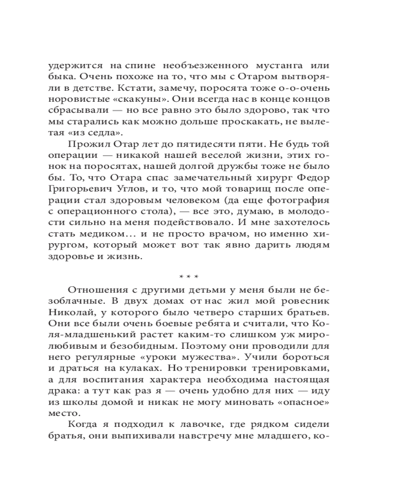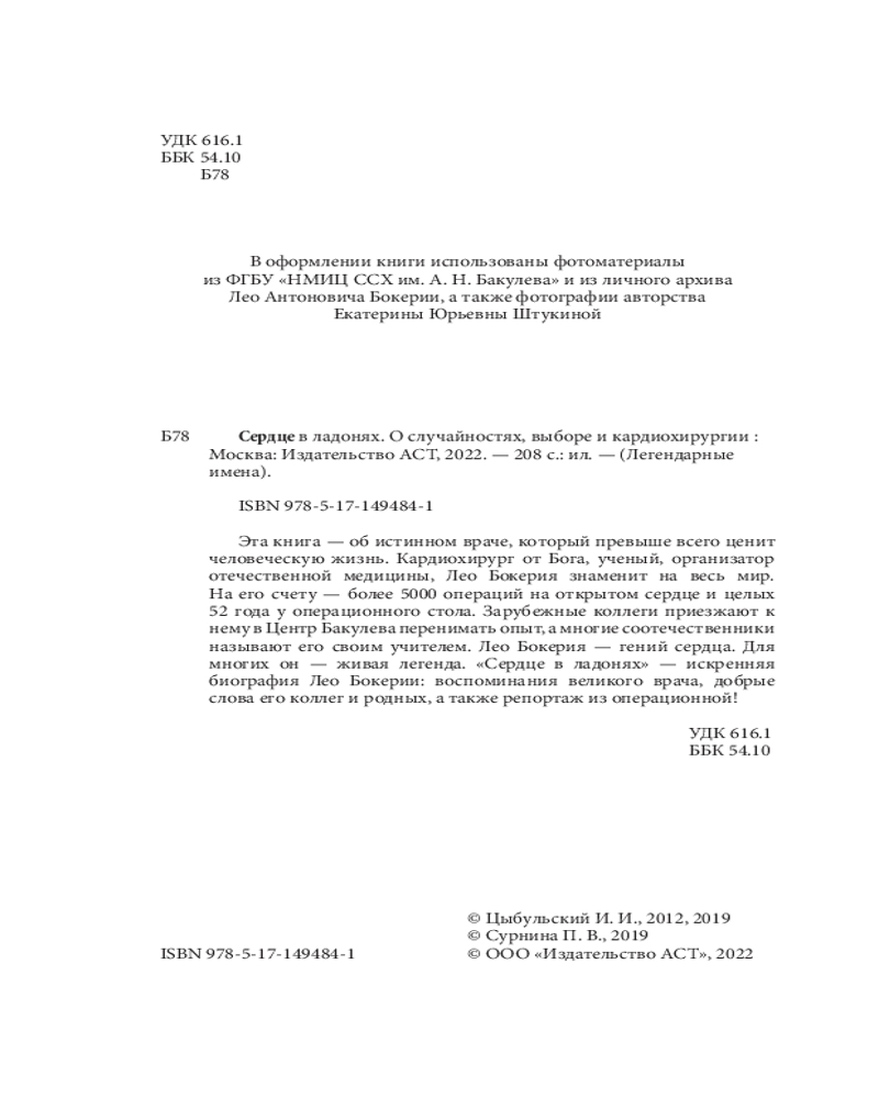 Книга на один вечер за чашкой чая. Рассказывает историю становления и жизни великого врача, есть несколько интересных моментов. Типичная автобиография, для тех, кто хочет почитать о ходе операций, узнать что-нибудь нового о медицине, книга не подойдет. Отдельно можно отметить наличие цветных фотографиях из архива Лео Бокерии.