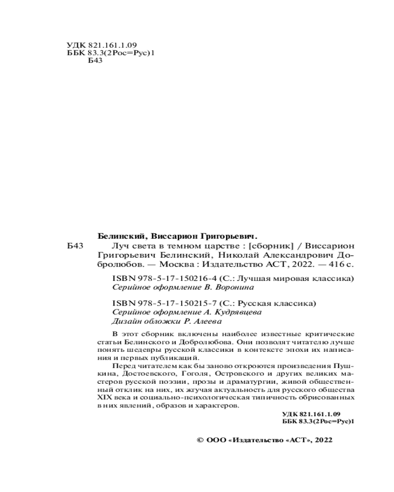 Луч света в темном царствеБелинский Виссарион Григорьевич