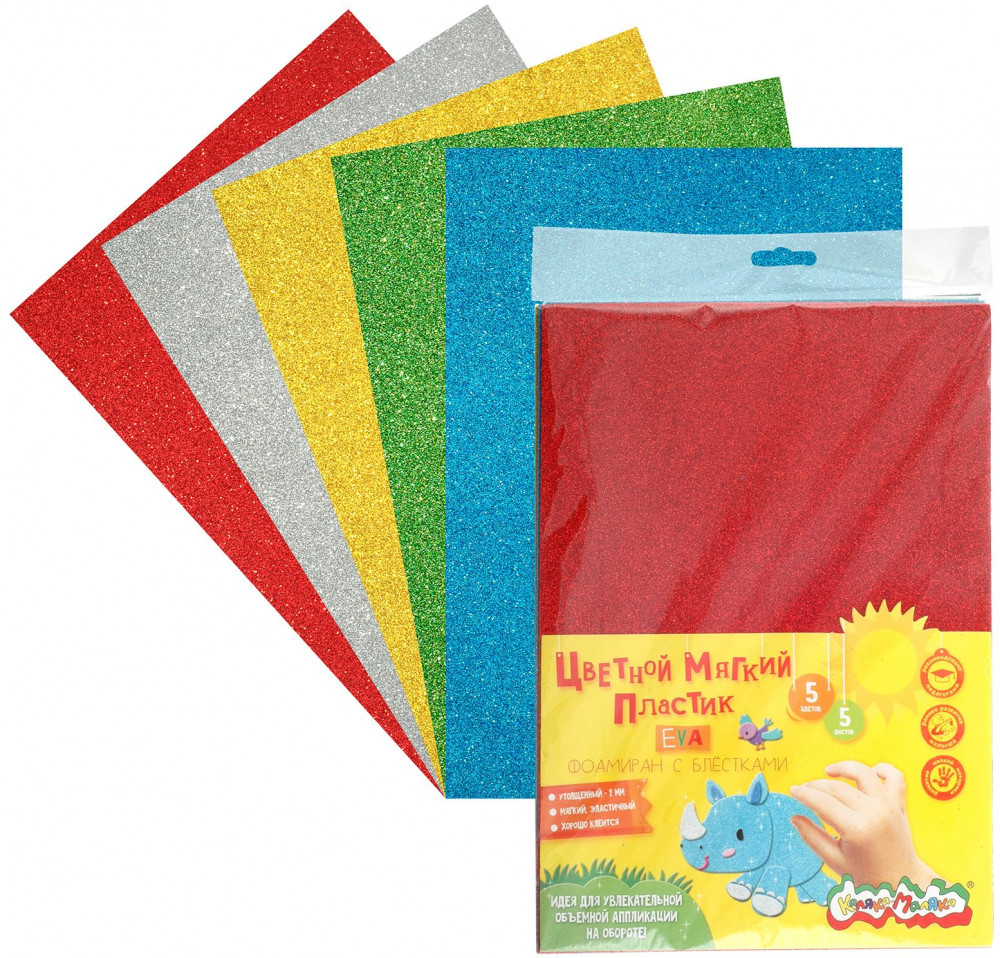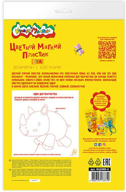 Необычный, мягкий материал для творчества EVA, или как его еще называют, фоамиран – это пластичная пенка, которая позволяет сделать не только аппликации, но и классные объемные поделки. В ассортименте Каляка-Малка есть как однотонный EVA фоамиран, так и с блестками.
