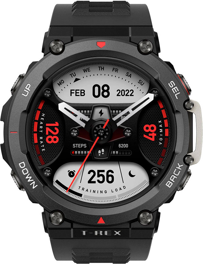 Amazfit T-Rex 2 обладает большим экраном, который облегчает просмотр, жизненно важных для вашего приключения, данных — будь то под солнцем пустыни, городскими фонарями или в походе при свете луны. Матовое покрытие часов и безель с металлическим напылением дополнены силиконовым, не впитывающим пот, ремешком, который сохраняет часы сухими и удобными, пока вы противостоите стихии.