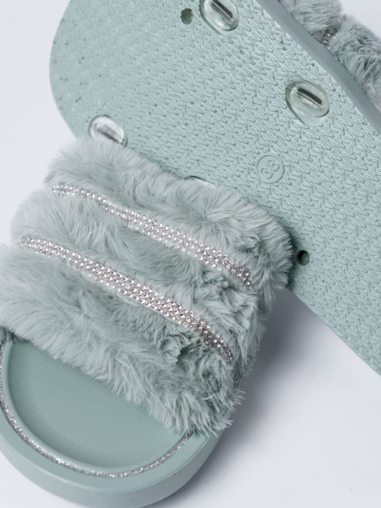 Гламурные тапочки, с цепочкой стразов, правда подошва резиновая, жёсткая, но внешний вид красивый