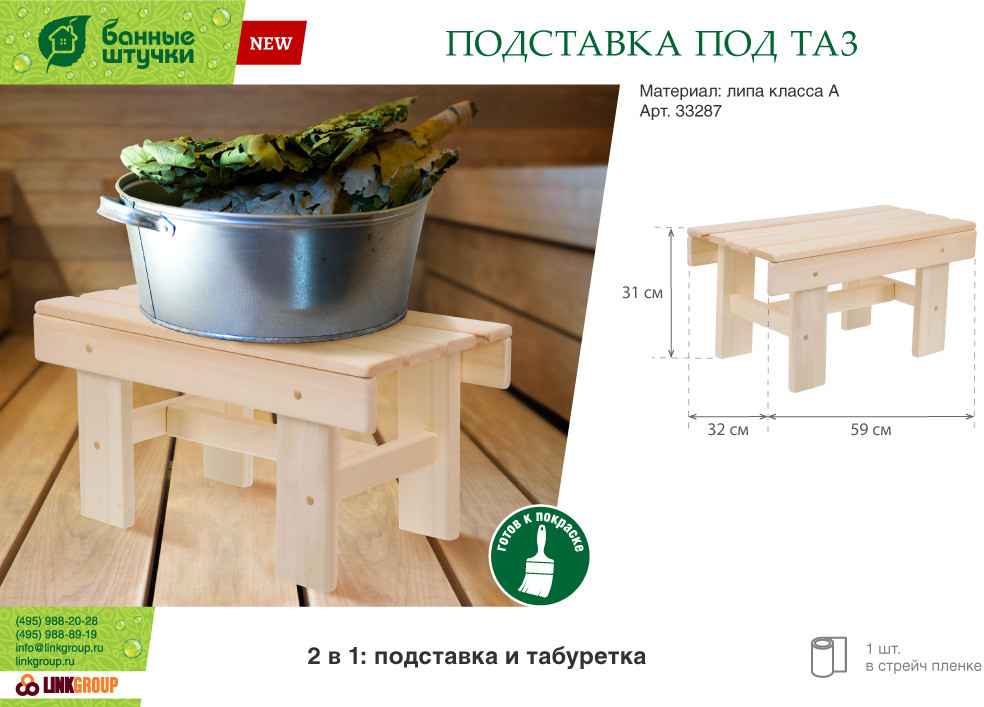 💳 Оплатить за товар можно при получении 🇰🇿 Есть бесплатная доставка по Казахстану 🎁 Копите бонусы с каждой покупки Мебель из древесины липы прочная, но в то же время мягкая. В процессе эксплуатации она не трескается и не коробится, сохраняя внешний вид длительное время. Благодаря пористой структуре, изделия липы быстро прогреваются и остывают. Поэтому для изготовления мебели для бань и саун липа — идеальный материал. Правила эксплуатации: не бросать, не оставлять под дождем, хранить в сухом помещении. |