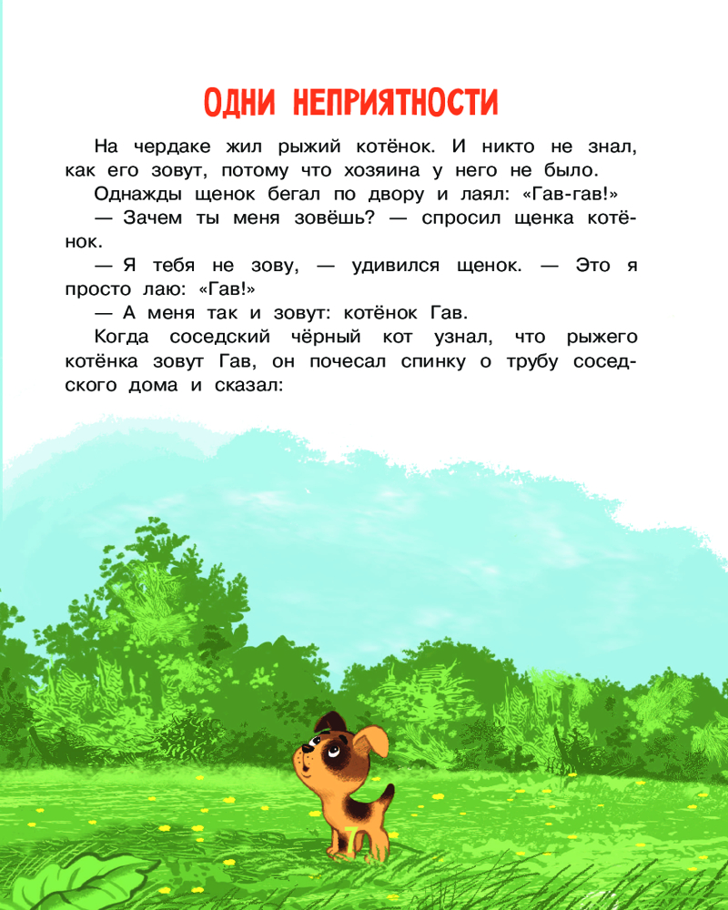 Сказки для маленькихВ данный момент этот товар отсутствует в продаже. Возможно, у нас найдется аналогичный или похожий товар здесь. Серия: Милому малышу Всё ли понимает тень и где лучше всего спрятать котлету? А как найти середину сосиски? На эти непростые вопросы котёнок по имени Гав и его друг щенок запросто находят ответы. Оказывается, это совсем несложно, если рядом есть друзья-единомышленники, хорошее настроение и фантазия. А что на эти шалости скажут строгие взрослые, в общем-то не так уж и важно: они ведь тоже были маленькими, должны понимать... Сказки из цикла «Котёнок по имени Гав» впервые выходят с новыми иллюстрациями Ольги Боголюбовой! |