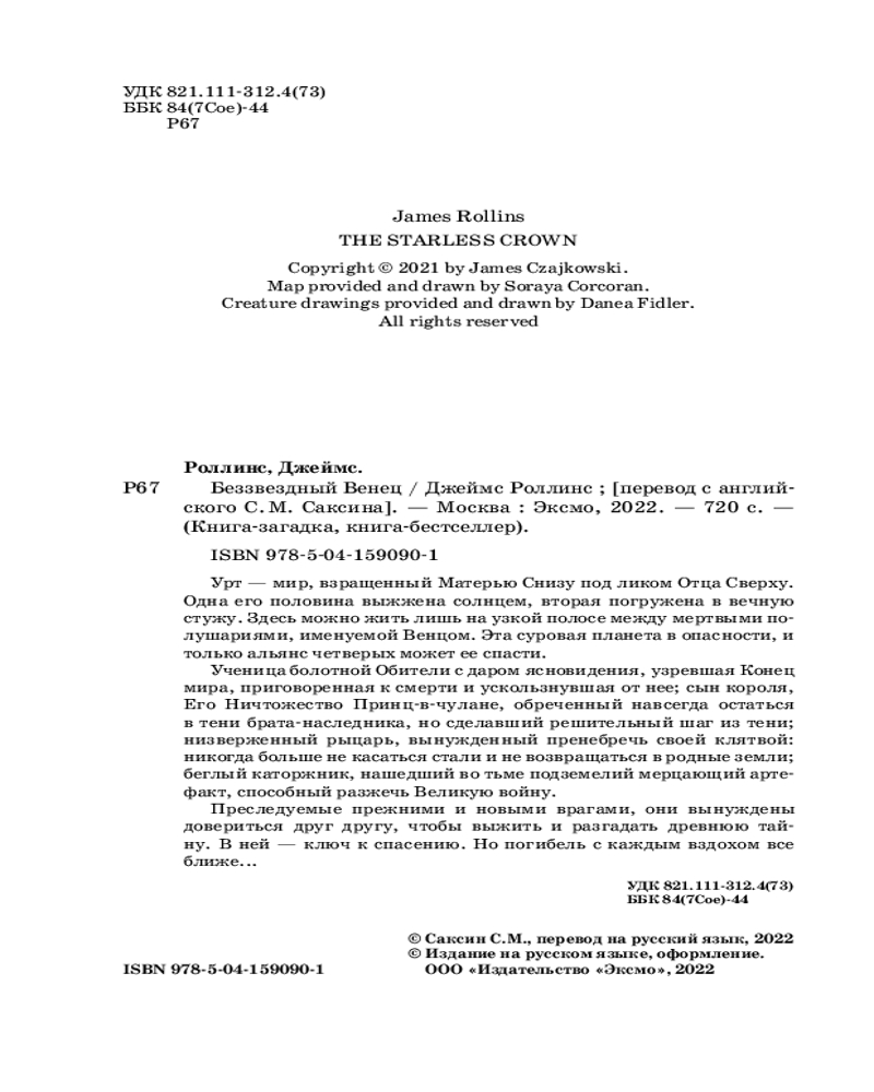 Сама книга прям так себе. Явная халтура от Роллинса, книга выезжает только за счет имени автора. Книга практически идентична его первой фэнтези серии о "Ведьме", только та на голову выше. Какие-то моменты, даже существа начисто скопированы с той же "Амазонии". Персонажи слабо раскрыты, сюжет избитый, похвалить могу только за относительно интересный концепт мира.