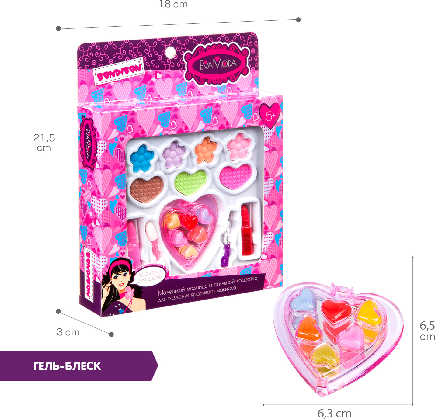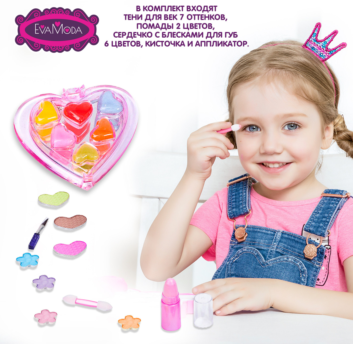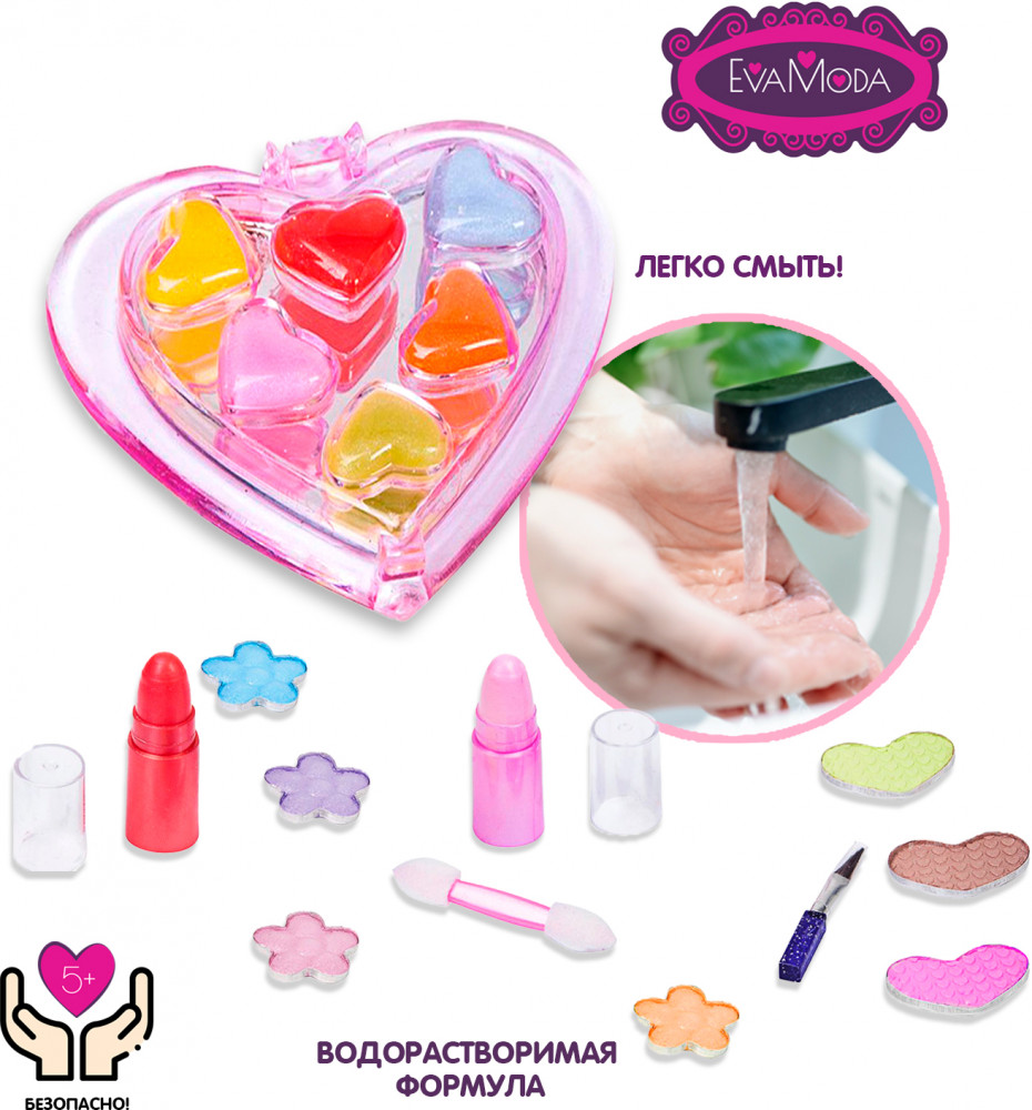 Серия: Eva Moda Прелестный мини набор для первого знакомства маленькой леди с косметикой! Вместе с мамой и подружками, можно воспользоваться косметикой и нанести макияж, устроив настоящий салон красоты. |