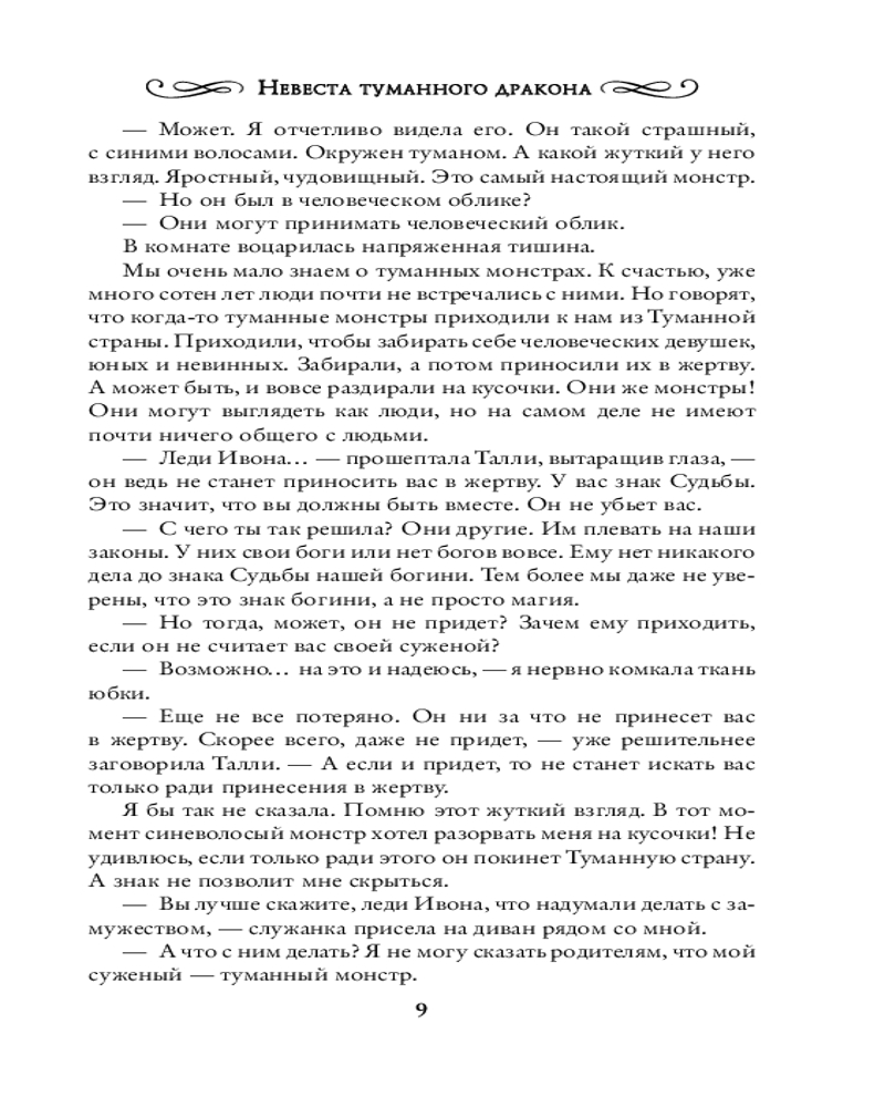 Невеста туманного драконаВ данный момент этот товар отсутствует в продаже. Возможно, у нас найдется аналогичный или похожий товар здесь. Серия: Звезды романтического фэнтези О стране туманных монстров ходит много страшных историй. Я думала, что бегу от ненавистного жениха, когда обратилась к тому единственному, что могло помочь. Древняя магия должна была показать мне суженого, предназначенного самой судьбой. Никто не пойдет против такого союза. И магия мне показала. Вот только суженым оказался тот, кто живет в тумане. Теперь он идет за мной. И бежать на этот раз бесполезно. |