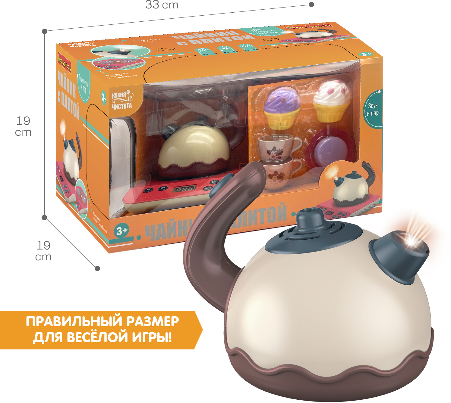 А давайте пить чай! С помощью игрового набора «Плита с чайником» от «Bondibon» легко устроить настоящее чаепитие, совсем как у взрослых! Зовите гостей. Ставьте чайник на плиту. А затем разливайте импровизированный чай по чашкам и угощайте друзей вкусными пирожными. Интересно, весело и полезно!