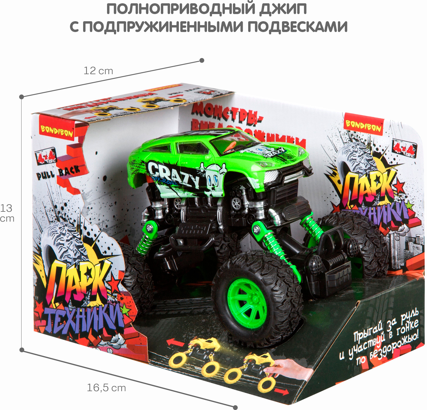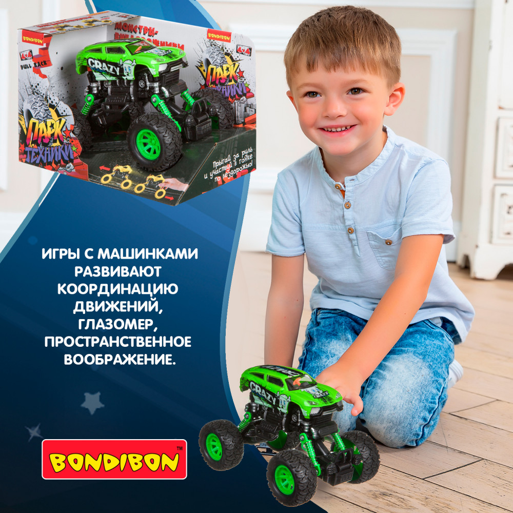 Bondibon Джип-бигфут инерционныйВ данный момент этот товар отсутствует в продаже. Возможно, у нас найдется аналогичный или похожий товар здесь. Серия: Парк техники В этой машинке с ярким кузовом есть все, чтобы понравиться мальчишкам с первого взгляда. Уменьшенная модель настоящего внедорожника-вездехода отличается оригинальным дизайном кузова и инерционным механизмом 4-х колес. С такой машинкой можно будет играть на любой поверхности, а её небольшой размер позволяет носить её везде с собой. Передняя и задняя подвеска подпружинены. Шарнирное соединение позволяет наклоняться влево и вправо (передняя и задняя подвеска с отдельными шарнирами). Корпус сменный. Принт на корпусе машины. |