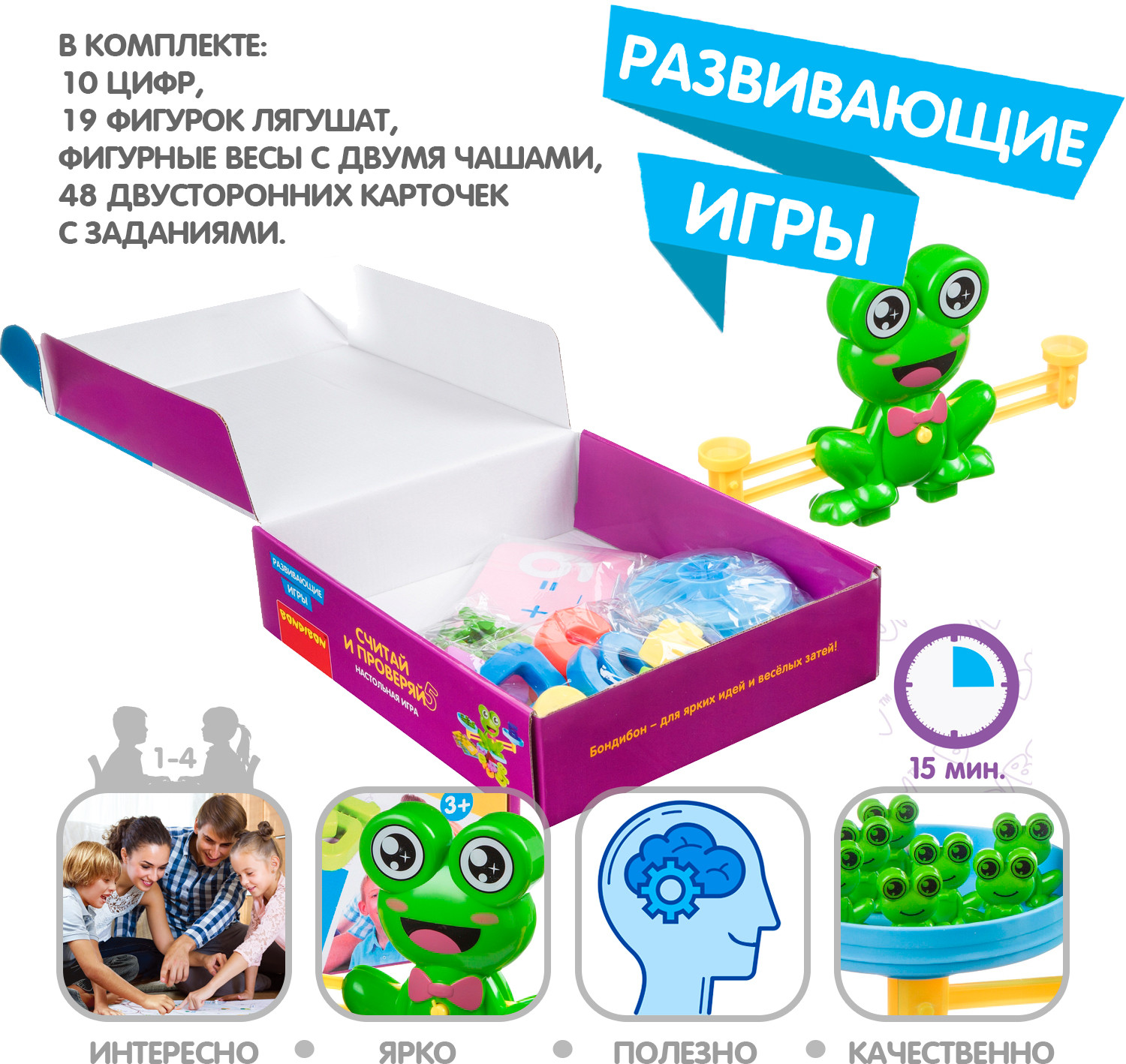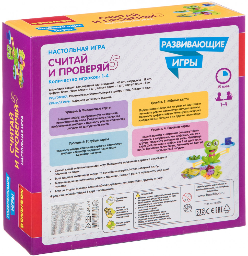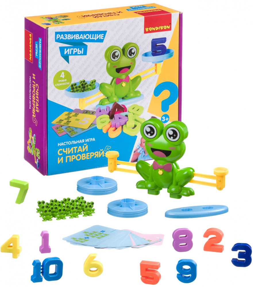 Bondibon Игра обучающая «Считай и проверяй»В данный момент этот товар отсутствует в продаже. Возможно, у нас найдется аналогичный или похожий товар здесь. Серия: Развивающие игры Настольная игра «Считай и проверяй» в увлекательной форме научит ребенка порядковому счёту, сравнению величин, простым арифметическим действиям, а также поможет развить логико-математическое мышление, концентрацию внимания, зрительно-моторную координацию движения. В игре 4 уровня сложности. Самый юный участник начинает игру. Выполните задание на карточке и проверьте решение на весах. Если задание выполнено верно, то весы балансируют. Игрок забирает карту. В случае если не получилось решить задание с первого раза, у игрока есть еще одна попытка. Если со второй попытки весы не сбалансированы, ход переходит другому игроку. Игрок, кто первый соберет 5 карт — победитель. |