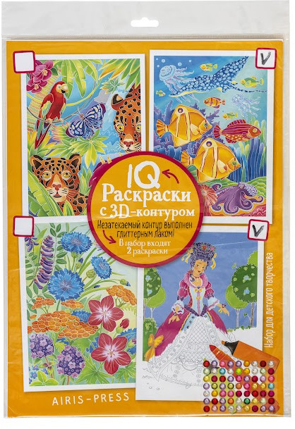 IQ Раскраски 3D контур. Набор 5 макси. Разноцветный микс-20%