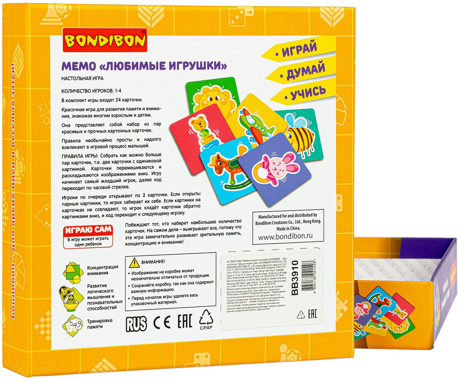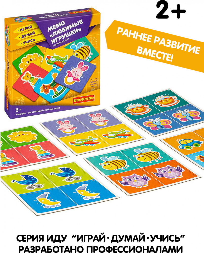 Серия: Играй. Думай. Учись Мемо «Любимые игрушки» серии «Играй Думай Учись» — это красочная игра для развития памяти и внимания, знакомая многим взрослым и детям. Она представляет собой набор из пар красивых и прочных картонных карточек. Правила необычайно просты и надолго вовлекают в игровой процесс малышей. |