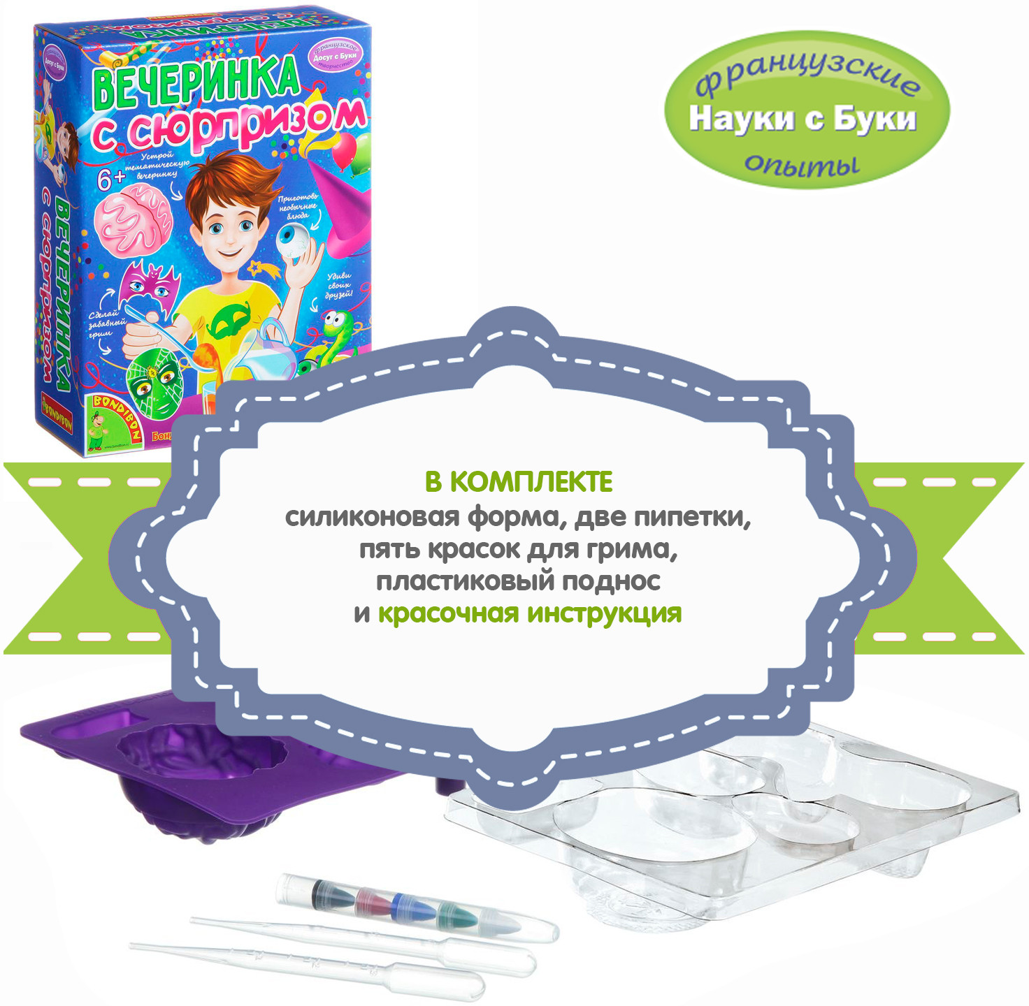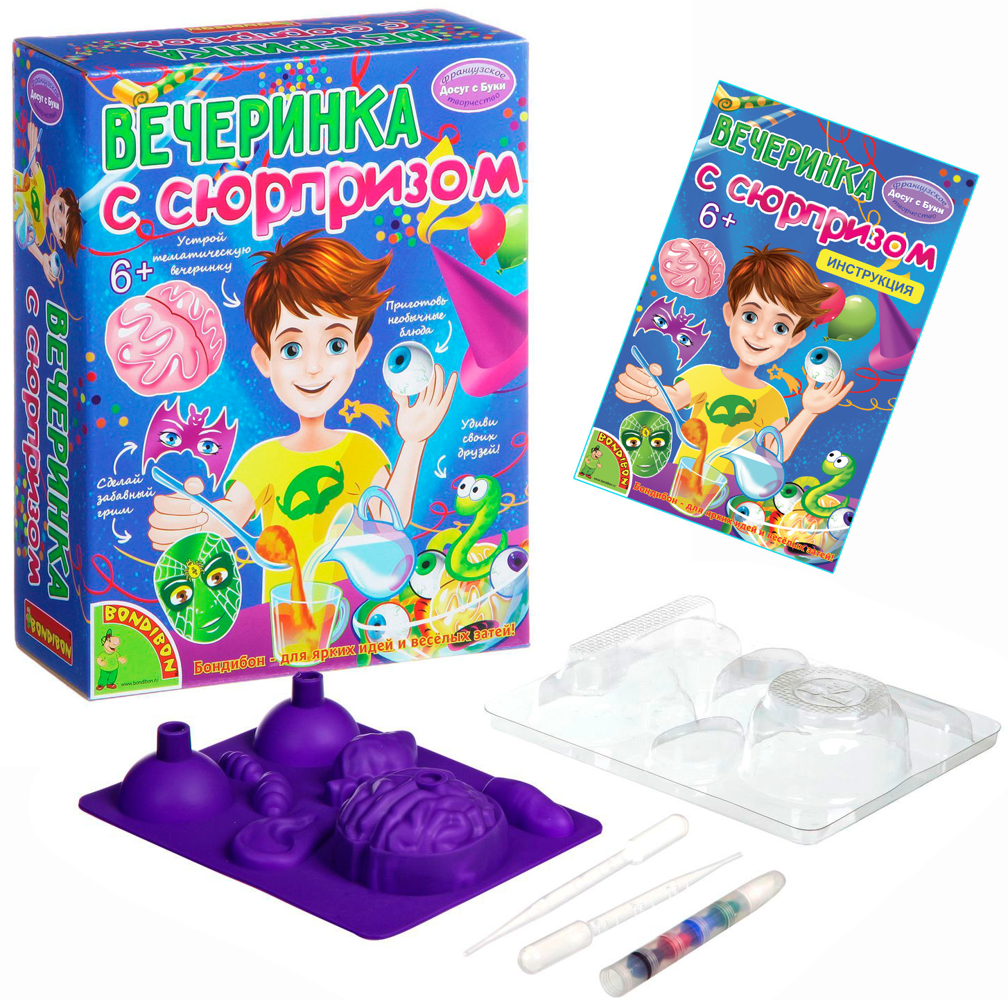 Bondibon Набор для опытов «Вечеринка с сюрпризом»В данный момент этот товар отсутствует в продаже. Возможно, у нас найдется аналогичный или похожий товар здесь. Серия: Науки с Буки. Французские опыты Намечается вечеринка и хочется сделать ее незабываемой? Набор «Вечеринка с сюрпризом» станет идеальным помощником для проведения супер-праздника. С помощью этого набора ребенок сможет провести незабываемый вечер в стиле Хэллоуина. Следуя инструкции, дети сделают розовое желе в форме человеческого мозга, конфеты в форме глаз и десерт в форме сердца. Теперь можно накрыть стол для своей зомби-вечеринки. А используя краски, дети сделают себе уникальный тематический грим. Такая вечеринка будет не только веселой, но и надолго запомнится. |