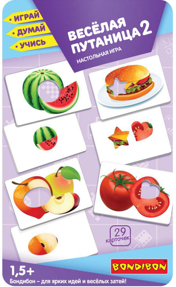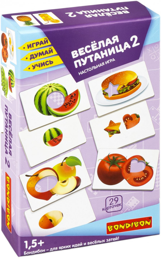 Серия: Играй. Думай. Учись Успехи в будущем начинаются с маленьких побед в детстве. Настольная игра «Весёлая путаница 2» от «Bondibon» поможет Вам сделать первый шаг на пути к первым свершениям. Серия «Играй Думай Учись» разработана специалистами в области психологии и педагогики и помогает тренировать память, концентрацию внимания и логическое мышление. |