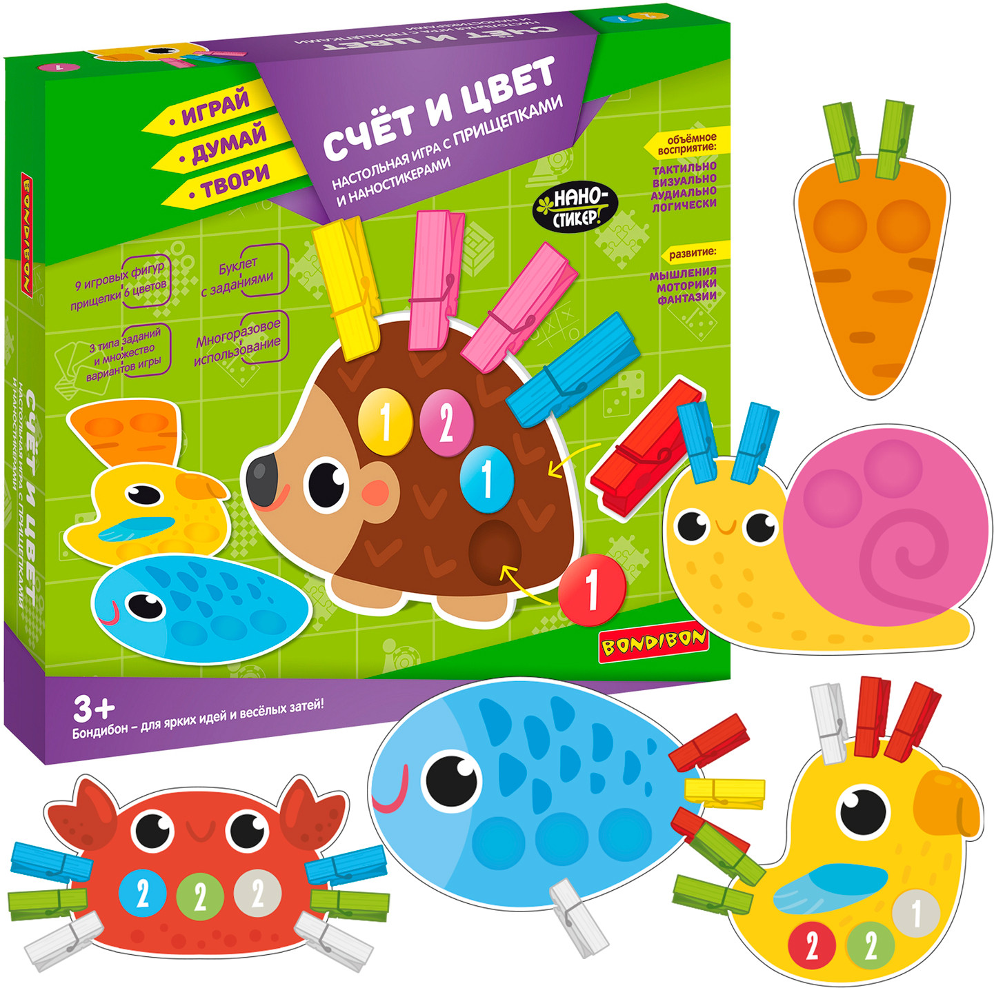 Развивающая и увлекательная — это все о настольной игре «Счет и цвет» с прищепками и наностикерами Bondibon! Серия Играй Думай Твори разработана профессионалами в области психологии и педагогики и развивает логическое мышление, концентрацию внимания, мелкую моторику и фантазию ребенка.