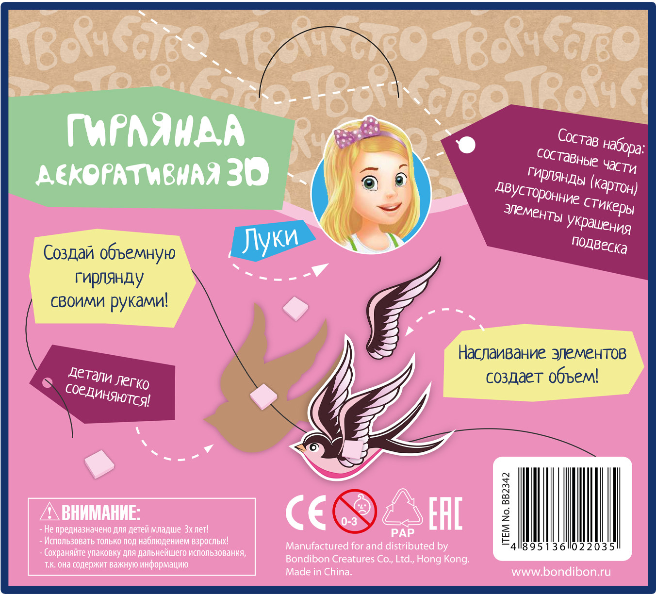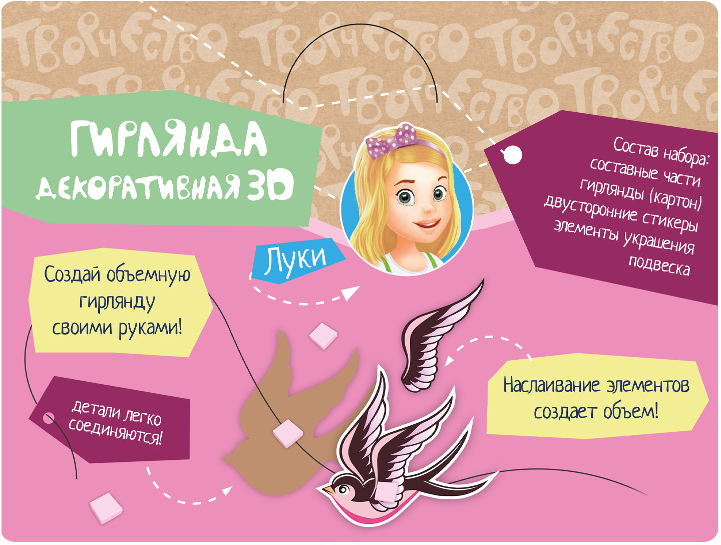 В наборе: гирлянды (картон), двусторонние стикеры, элементы украшения, подвеска (длина 195 см).