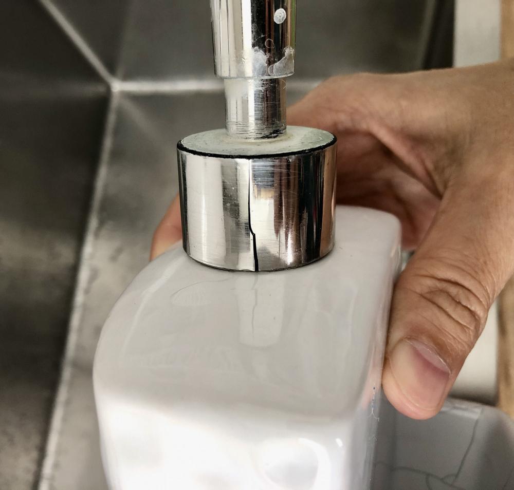 Во время нажатие на дозатор горлышко крошится как вафля и пошла паутинка по всему флакону!