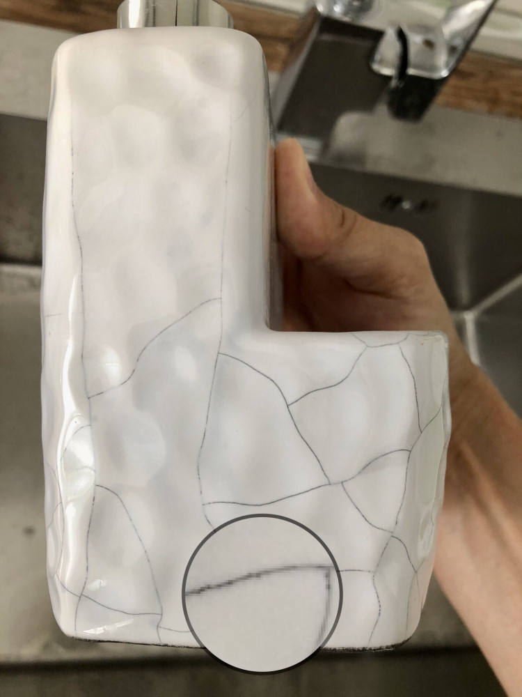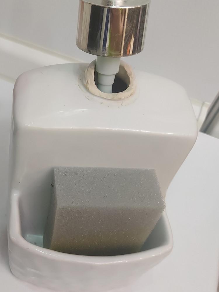Бұл дозаторды ақпан айында 4112 теңгеге алдым 20% жеңілдікпен (қазір бағасы түсіп тұр 3600 шамасы — бұл бағаға да тұрмайды). Наурыздан бастап қолданыста болды. 3,5 айдағы түрі суретте. Басында қуандым, әдемі боп тұрды. 1 айдан соң байқадым, қақпағы жарылған, дозатор түрі кетіп қалды. Лақтыруға қимай (4100 теңгені 1 айда лақтыруға ұялдым🫢) пайдалана бердім. Кейін қарасам сызат (трещины) пайда болды және сасық иіс шыға бастады (тұрып қалған шалшық иісі — запах застоялой воды). Алуға кеңес бермеймін. Сапасы төмен керамикадан жасалған, құлаған жоқ, соның өзінде сызат пайда болды. Суретте көрінсе сұрғылт, қарайған түстер бар — көгеріп жатыр ма бірдеңе. Сызаттар арасы да көгеріп кеткен. Асты көгеріп кетті, иіс содан шықты. Бұрын керамикадан жасалған дозатор болды, бірақ алғаш көруім дәл осындай көгеруді. Үнемі ыдыс жуылатын, ылғал жерге бармайды. Іліп қойып пайдаланбаса🤔
