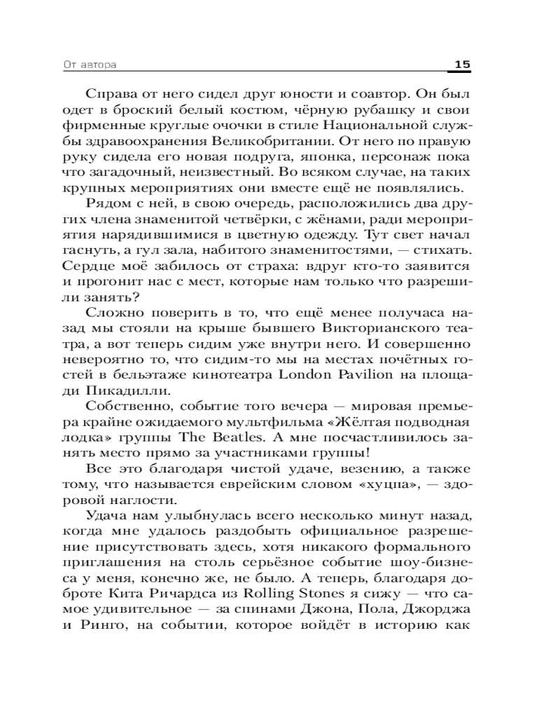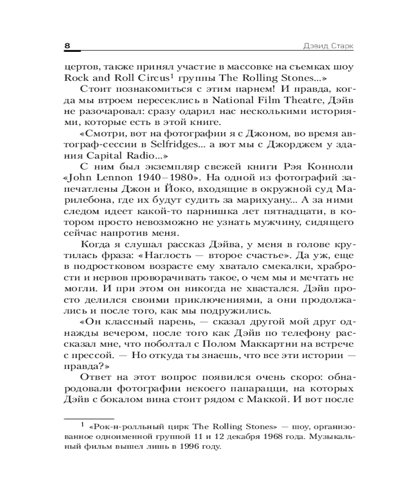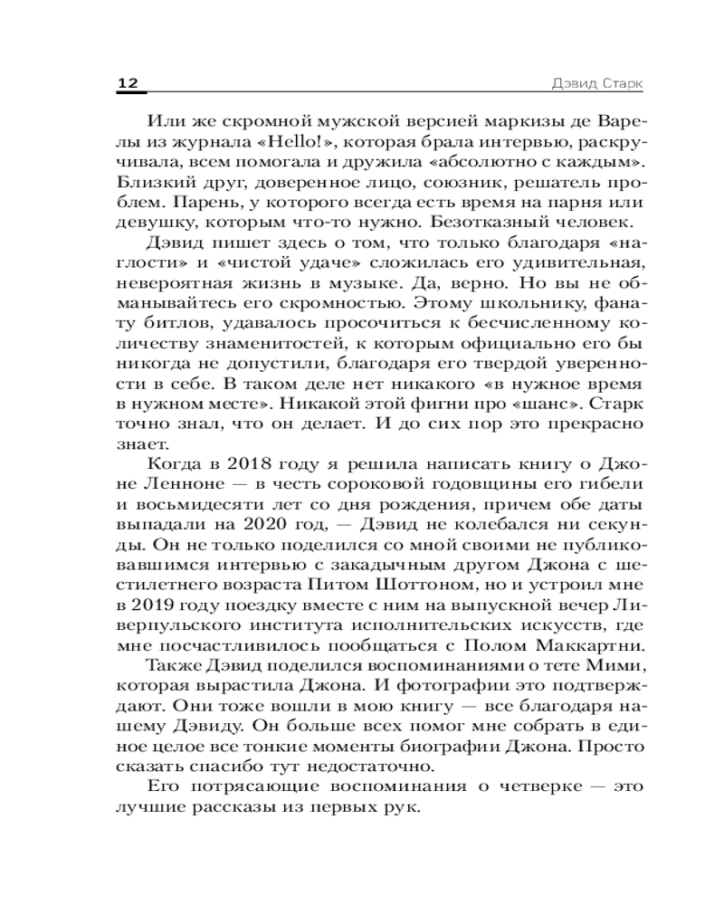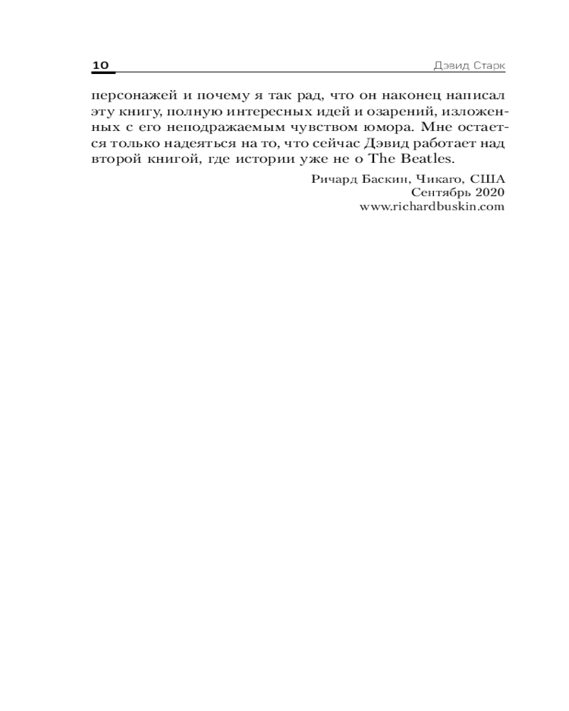 Дэвид Старк посвятил эту книгу всем поклонникам The Beatles по всему миру. Пусть она не только расскажет вам много забавных случаев из жизни участников группы, но и придаст сил поверить, что все возможно. Стоит лишь очень сильно захотеть.