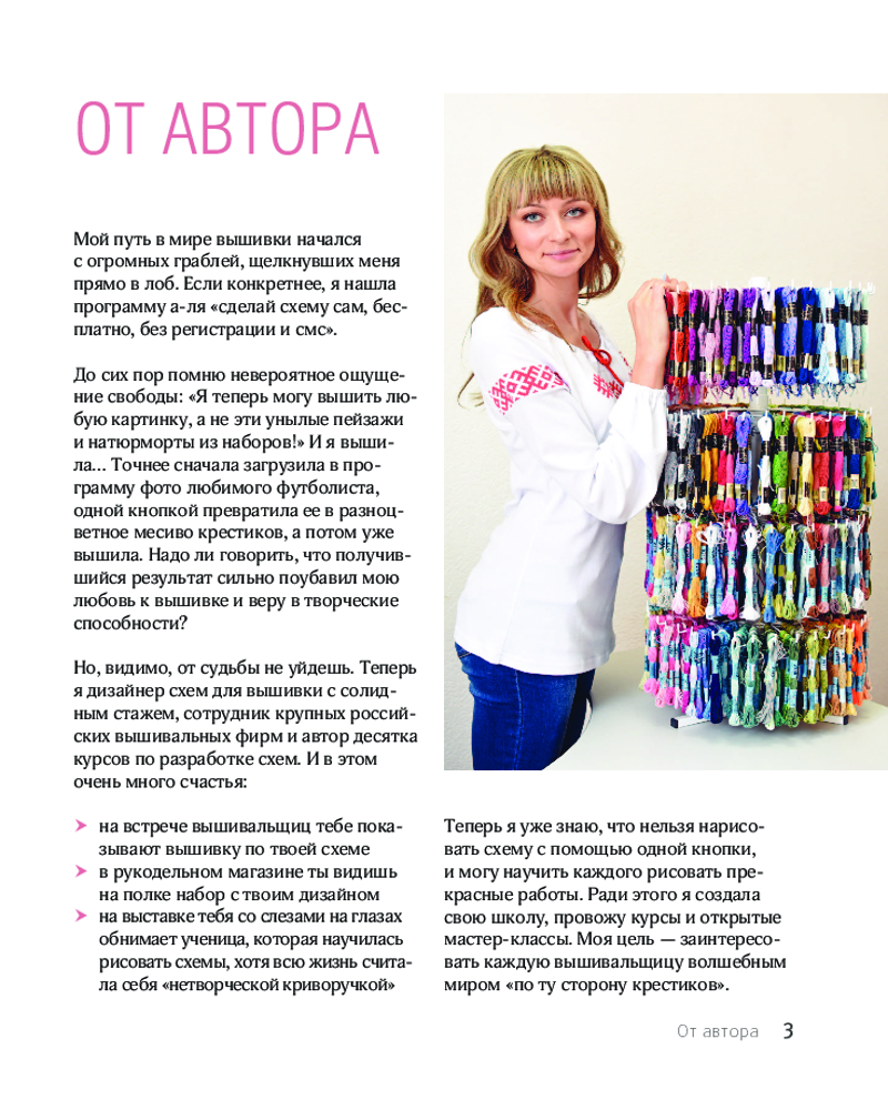 Вышивай как дизайнер! Полный курс по разработке схем для вышивки крестом. От новичка до дизайнераВ данный момент этот товар отсутствует в продаже. Возможно, у нас найдется аналогичный или похожий товар здесь. Серия: Высшая лига рукоделия. Самоучители Книга, о которой мечтали миллионы вышивальщиц! Все, кому не угодить готовыми схемами для вышивки, которые предлагают магазины. Все те, кто мечтает вышить именно свой конкретный, дорогой сердцу сюжет, но не знает как. Все те, кто готов сделать решительный шаг в мастерстве вышивальщицы и сделать вышивку не только способом самовыражения, но и способом заработка. |
