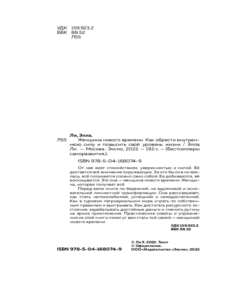 💳 Оплатить за товар можно при получении 🇰🇿 Есть бесплатная доставка по Казахстану 🎁 Копите бонусы с каждой покупки Серия: Top expert. Практичные книги для работы над собой От нее веет спокойствием, уверенностью и силой. Ей достается всё внимание окружающих. За что бы она ни взялась, всё получается словно само собой. Ее добиваются, ей восхищаются. Это она — женщина нового времени. Женщина, которая получает всё. |