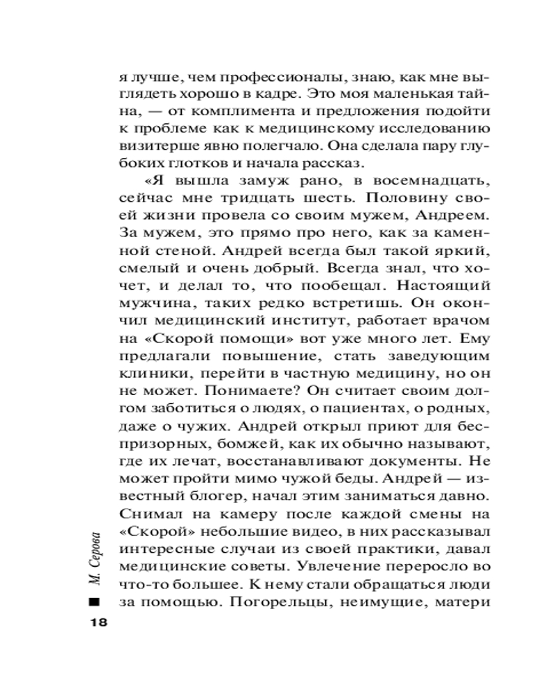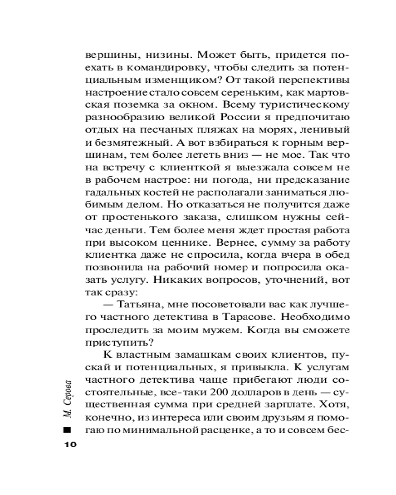 | Марина Сергеевна Серова — один из ведущих авторов серии современного русского детективного жанра (существует версия, что это коллектив авторов под общим руководством литературного агента Сергея Потапова). Согласно легенде, «выпускница юридического факультета МГУ, работала в Генеральной прокуратуре, сотрудница одной из спецслужб, участвовала в боевых операциях». Между тем написала 425 произведений размером порядка 200 страниц (и число их постоянно увеличивается). Часть произведений... |