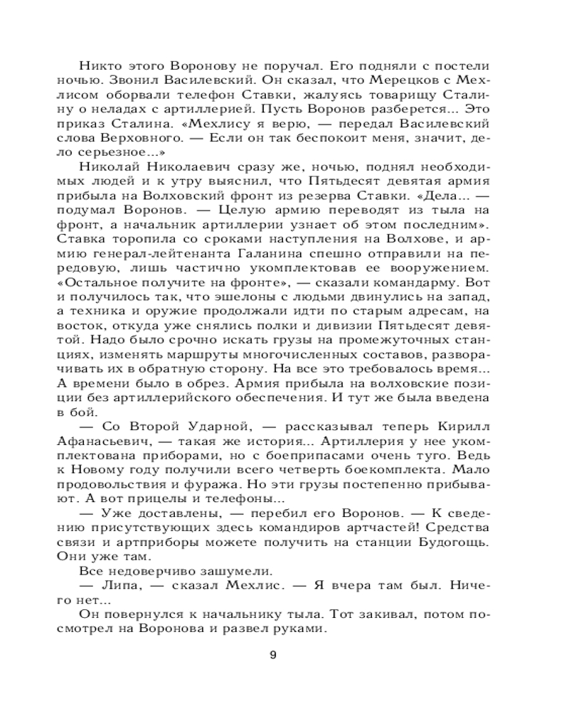 В книге есть место не только героизму советских солдат, но и просчетам верховного командования. Была ли вина Сталина в больших потерях и гибели 2-й ударной армии? Можно ли было сократить потери и прорвать кольцо вокруг Ленинграда? Об этом рассказывает роман Станислава Гагарина. |