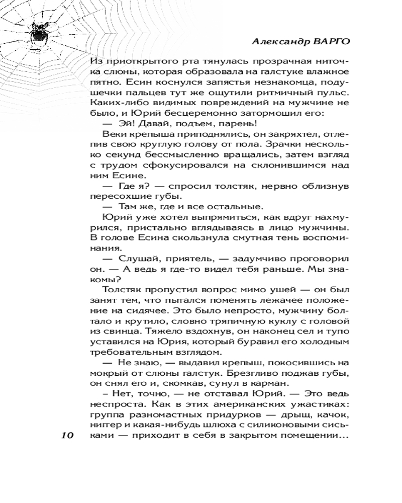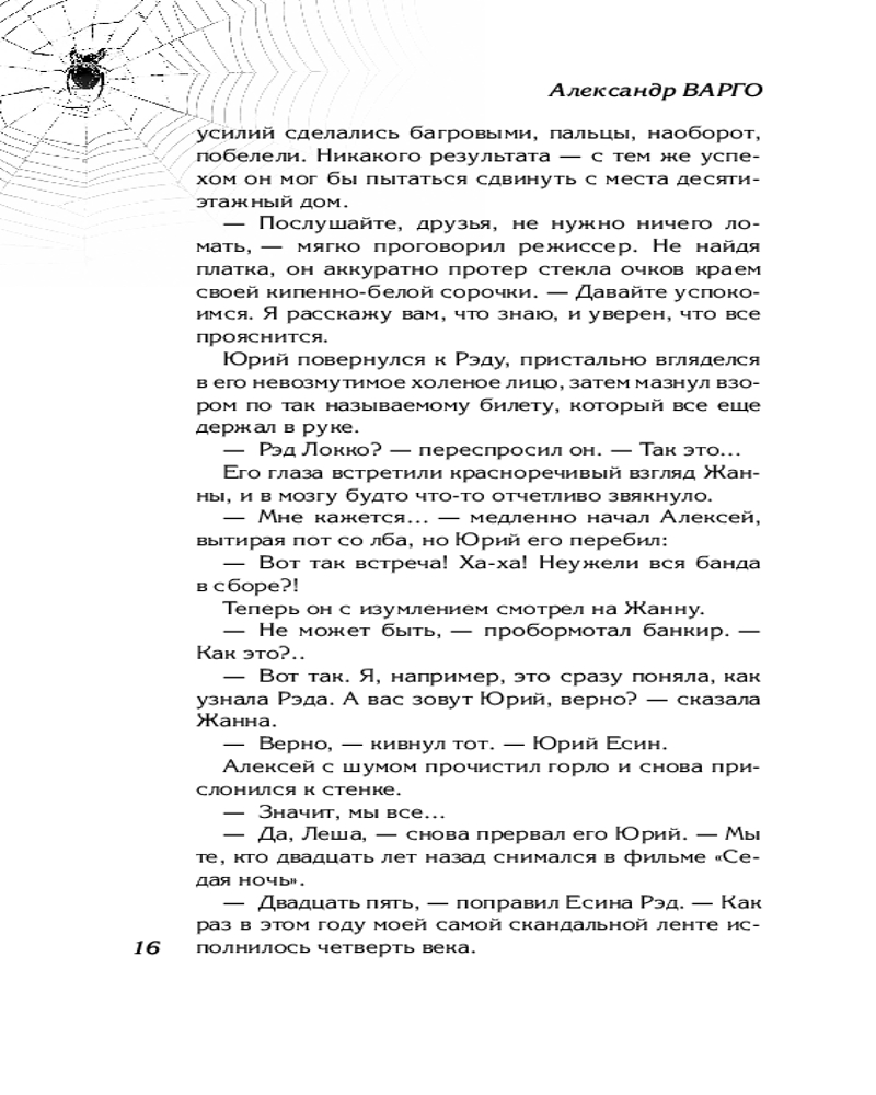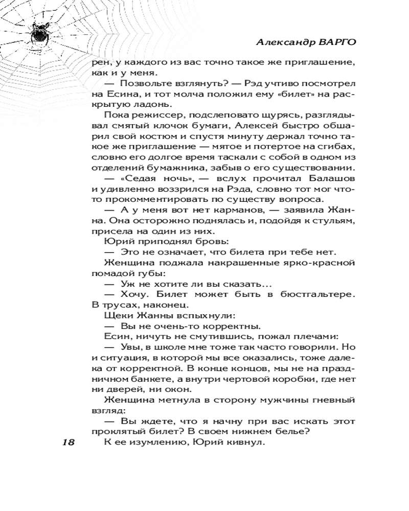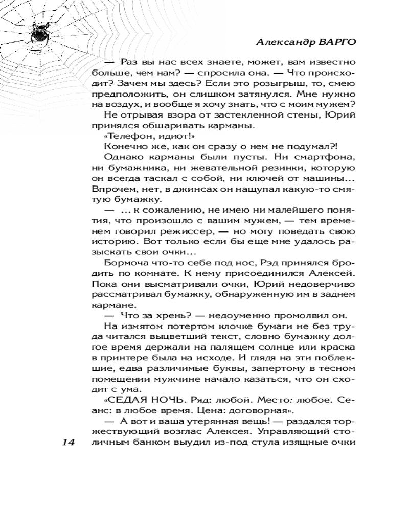 | Александр Варго — псевдоним российской группы писателей, работающих в жанре хоррора и предпочитающих скрывать свои настоящие имена. К настоящему времени известны некоторые авторы проекта - это Игорь Исайчев, Алексей Шолохов. Кроме них в проекте задействованы и другие писатели. |