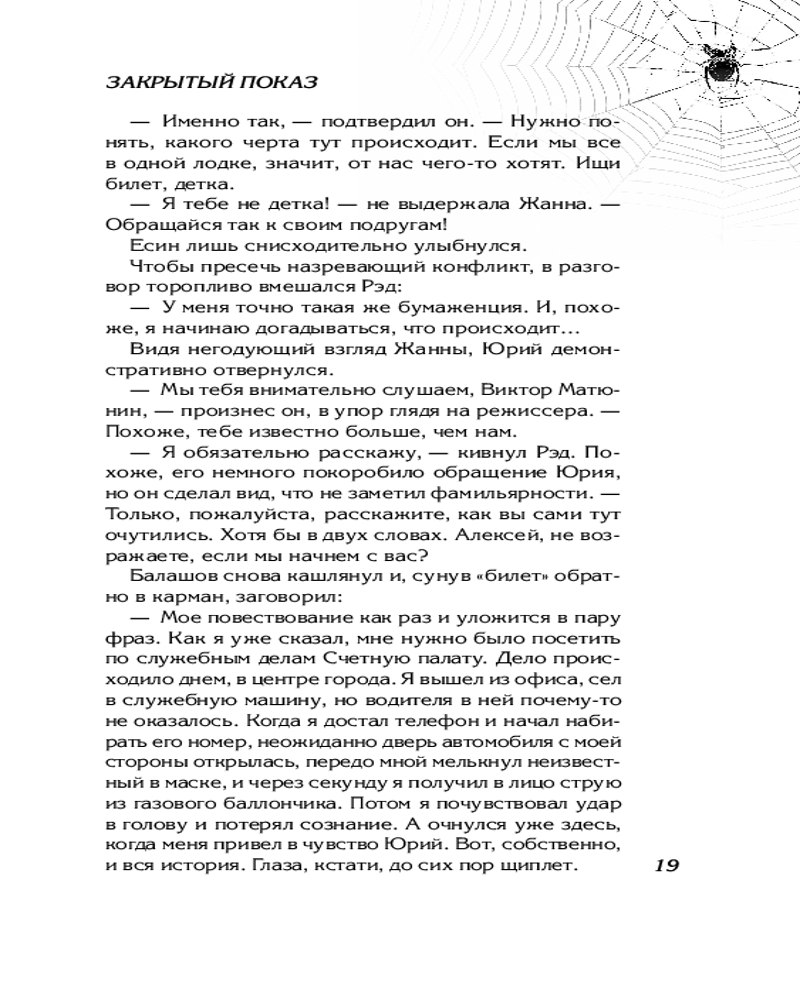 Закрытый показВ данный момент этот товар отсутствует в продаже. Возможно, у нас найдется аналогичный или похожий товар здесь. Серия: MYST. Черная книга 18+ (новое оформление) Идут съемки любительского фильма ужасов начинающего режиссера Матюнина. Главную героиню Жанну, согласно сценария, два злодея должны насиловать, пытать, а затем четвертовать. Потребовались весьма дорогие атрибуты — трюки, грим, спецэфекты, компьютерная графика. И сразу выяснилось, что такой запредельный бюджет команда не потянет. |