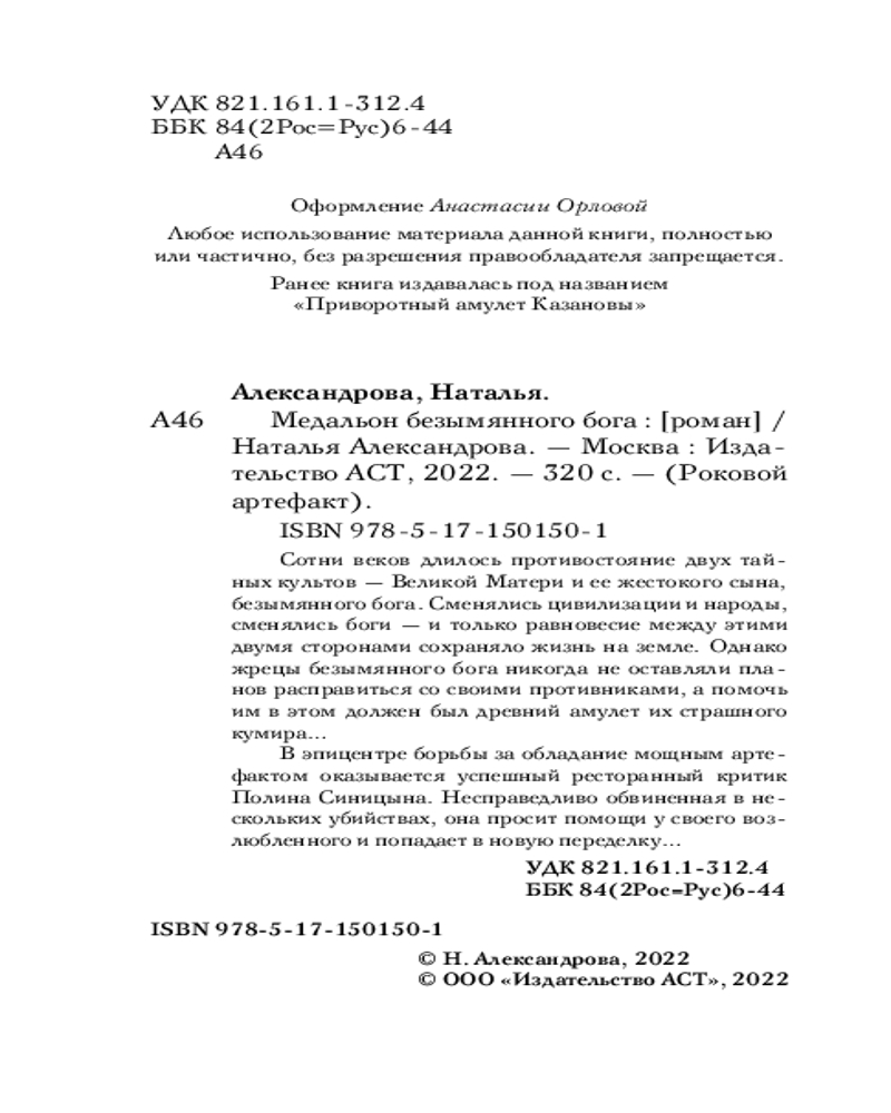 | Медальон безымянного бога Наталья Николаевна Александрова