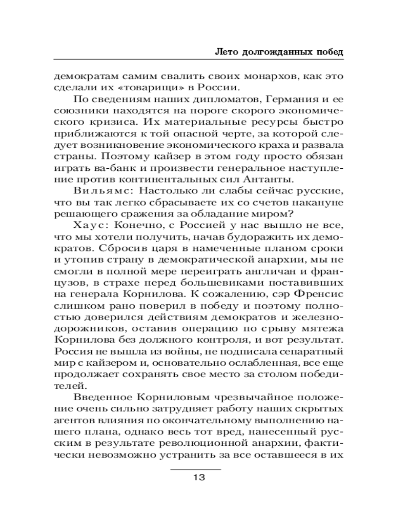 Серия: Военная фантастика Август 1917 года, мятеж генерала Корнилова удался. История пошла по новому пути. Верховный правитель России генерал Лавр Петрович Корнилов собрал вокруг себя истинных патриотов таких как Слащев, Кутепов, Деникин, а так же Сталин, Держинский, Камо... И Россия не упала в анархию, удержала фронт, и вот уже проливы и Константинополь под рукой России. Но и германский гений не дремлет, и новое немецкое оружие стирает с земли Лондон и Париж. Война разгорается с новой силой и на суше и на море и в воздухе. |