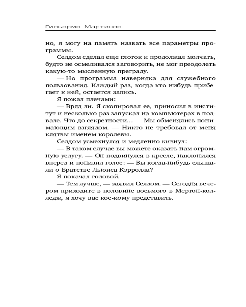 Совершено жестокое покушение на девушку, обнаружившую в оксфордских архивах некую рукопись, способную стать сенсацией века для всех, кто изучает биографию или творчество Кэрролла. Отравлен издатель, собиравшийся опубликовать этот документ. И каждое из деяний таинственного убийцы напоминает очередную цитату из книг об Алисе...
