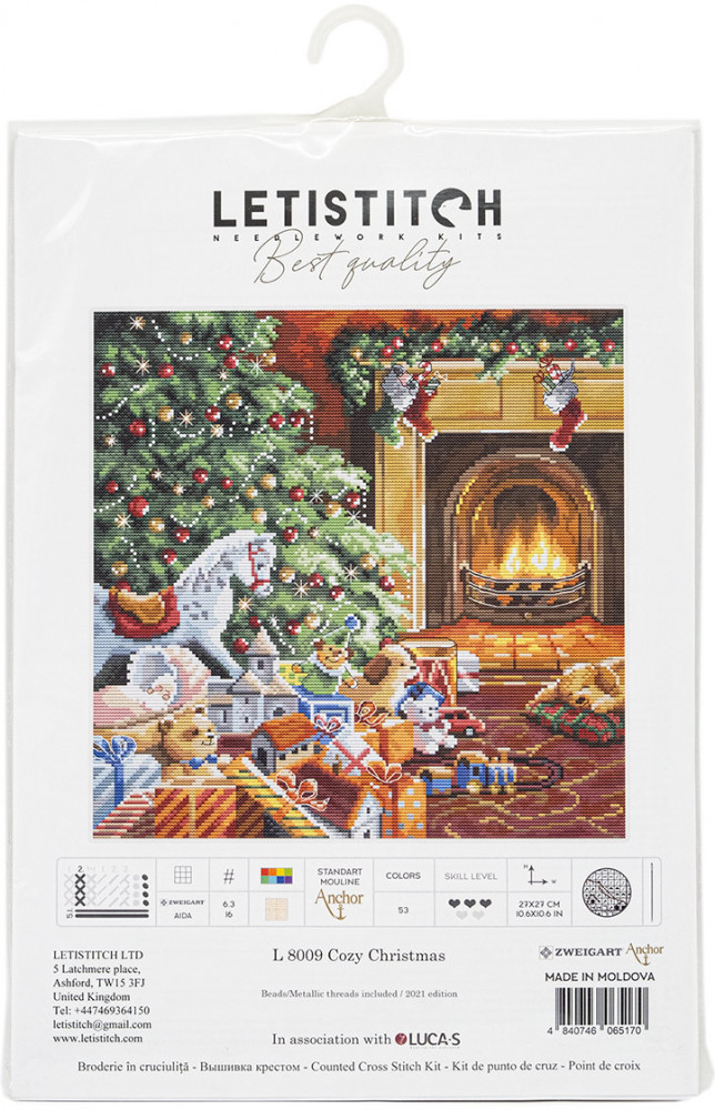 При кажущейся простоте техника вышивания крестом позволяет создавать настоящие картины богатой палитрой, плавными цветовыми переходами. Чтобы получился отличный результат, нужны качественные материалы, продуманная схема и терпение мастерицы. Производители позаботились о том, чтобы вы сосредоточились на вышивании, не отвлекаясь на мелочи: на картонном органайзере с нитками есть условные обозначения цветов — теперь вышивать по схеме намного проще. Для вышивания используются материалы высокого качества от проверенных европейских брендов. Letistitch — бренд, основанный в Великобритании, при этом сами наборы для вышивания крестиком производятся на заводе Luca-S в Республике Молдова.