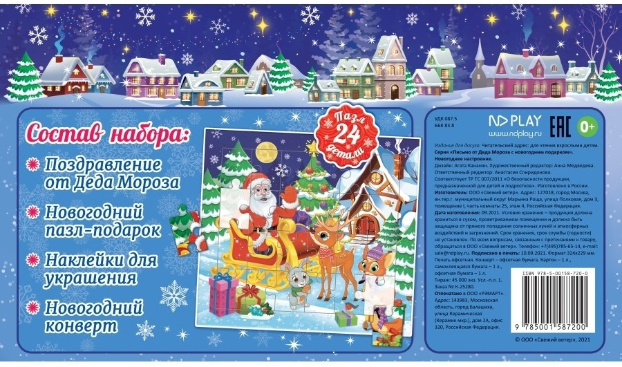 ND Play Письмо от Деда Мороза с новогодним подарком «Новогоднее настроение»наклейки пазл яркое оформление лёгкая сборка В данный момент этот товар отсутствует в продаже. Возможно, у нас найдется аналогичный или похожий товар здесь. Серия: Новогодний подарок Письмо от Деда Мороза с пазлом-подарком. Такой праздничный набор с картонным пазлом — отличный подарок для вашего ребенка, который создаст новогоднее настроение. Уже скоро наступит пора новогоднего волшебства, каждый ребенок ждет и верит в Новогоднее чудо. Подарите сказку своему ребенку! Получение письма от Дедушки Мороза станет незабываемым и самым радостным событием для каждого ребенка. |
